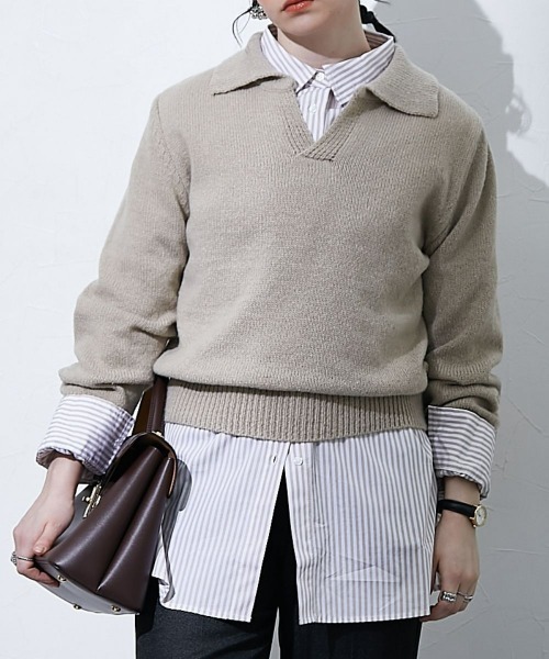 レーヤードコーデにおすすめのスキッパーニット。 ■デザイン アウトでも着用しやすい丈感。 リブが効いているので、シャツを裾から大きく出したい場合は裾リブを折って、短くスタイリングすることができます。 ■素材 肌当たりの良い糸を使用した単色ジャガード編みニットトップス。 ■おすすめのスタイリング トレンドの衿付ストライプシャツとのコーデがおすすめ。 ※ご覧のモニター環境や撮影環境により、実物の商品と多少色味が異なって見える場合がございます。 また表示のサイズ感と実物は若干異なる場合もございますので、予めご了承ください。 ※サイトに表示されているカラー名と実際のお届け商品に記載されているカラー名が異なる場合がございます。 <品質>ポリエステル100% 引っかかると編み目が伸びたりほつれたりする恐れがありますので、ご注意ください。 透け感:なし 伸縮性:あり 生地の厚み:普通 光沢感:なし 季節:春・秋・冬向き シルエット:普通 <洗濯方法> 洗濯機OK ネット使用 ―――――――――――――――――――――――― 【 TTOL | トール 】 The time of Life人生で一番思い出に残る時間をともに過ごすファッションアイテムを。 インスタグラムではスタイリングや新作アイテムの情報を更新中!ぜひチェックしてみてください◎ 【@ttol_official】 ▼商品のお気に入り登録完売カラーの再入荷通知や、ラスト1点、セールの通知をお知らせいたします。 ▼ブランドお気に入り登録新商品や再入荷など、いち早くブランドの情報を受け取ることができます。 ※ご注文いただいた予約商品のお届け時期の確認は、注文履歴ページより行えます ―――――――――――――――――――――――― ■キーワード レディース、ttol、TTOL、トール、冬、夏、春、秋、トップス、ニット、20代,30代,40代,50代,お洒落,かわいい,韓国ファッション,韓国風ファッション,カワイイ,レディースライク,メンズライク,着回し,デートコーデ,テーマパークコーデ、休日コーデ,カフェ活,ショッピング,Y2K,レディース,レディースファッション,y2k,衿付き,ポロニット,レーヤード,ニット,レーヤードコーデ,春,スキッパー,スキッパーニット