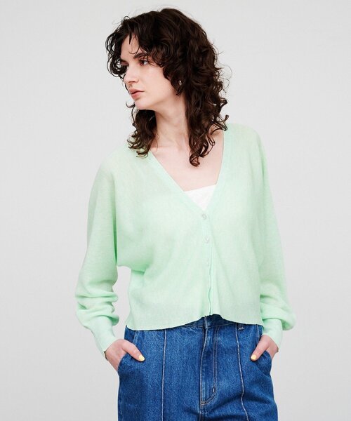 春から夏まで活躍するショート丈カーディガン。 【デザイン】 ・控えめなラメ感が華やかさをプラスするショート丈のカーディガン。 ・フロント部分はVネックのシンプルデザインで、バックスタイルにはさりげないロゴチャーム付き。 ・柔らかな肩のラインを作るラグランスリーブがリラックしたモード感を演出。 【素材】 ・軽やかで柔らかな質感。 ※ウォッシャブル加工(手洗い可能) 【着こなしポイント】 ・ハイウエストのパンツやスカートに合わせればこなれ感のあるバランスに。 ・羽織としてだけでなく、ボタンを留めてプルオーバー感覚でも着用可能。 ーーーーーーーーーーーーーーーーーーーーーーーーーーーーーー 気になるアイテムはお気に入り登録がおすすめ! お気に入り登録で、再入荷通知やお値下げ情報をお知らせ。 お得な情報をいち早くお届けいたします! アイテムページにある、ハートマークをクリックして追加できます。 ーーーーーーーーーーーーーーーーーーーーーーーーーーーーーー ※照明の関係により、実際よりも色味が違って見える場合があります。また、パソコン・スマートフォンなどの環境により、若干製品と画像のカラーが異なる場合もございます。 店舗へのお問い合わせ商品番号:R91-32409 ●製品寸法: 02(M):着丈45cm 裄丈85cm 備考: