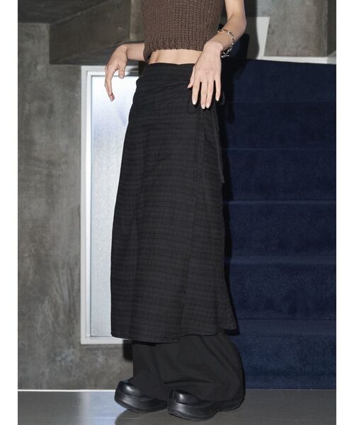 薄手のフランネル生地を使用したラップ仕様のロングスカート■デザイン春夏にも着用出来る薄地のフランネルは、軽さと程よい落ち感があります。ウエストサイズは調整可能なので、ボトムに合わせて様々なレイヤードバランスが楽しめる1着です。※着用画像はフラッシュの加減で実際の製品と色味等が異なる場合がございますので、生地のズームアップ画像をご確認ください。※ご利用の端末画面の設定により実際の商品と色味が異なる場合がございます。【商品特徴】透け感:なし伸縮性:なし生地の厚さ:普通サイズ感:普通裏地:なしポケット:なし