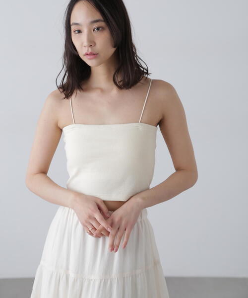 [Fabric&Design] 昨年ご好評頂いたカップ付きショート丈キャミソールが今年も登場。 オフ・ブラックは実績カラー。 グレーは新色です。綿リブ素材で肌触りが優しく、ストレッチ性もあり気心地抜抜群のカップ付きキャミソール。 華奢な肩ストラップで抜け感があり、レイヤードしても邪魔になりません。 [Styling] ベアトップ風のシンプルなデザインで着回し力抜群です。 襟ぐりの開いたトップスやワンピースとのレイヤードや、シアートップス、カーディガンのインナー使いがおすすめ◎ ■透け感:[オフ]ややあり[その他]なし ■生地の厚さ:普通 ■裏地:なし ■伸縮性:あり ■光沢:なし ■シルエット:スタンダード --------------------------------------------------- ◆商品のお気に入り登録◆ お気に入りアイテムの値下げ・再入荷・在庫1点などの通知を受け取ることができます。 ◆ブランドのお気に入り登録◆ 新商品や再入荷、セール、クーポン配布などお得な情報を受け取ることができます。 ---------------------------------------------------