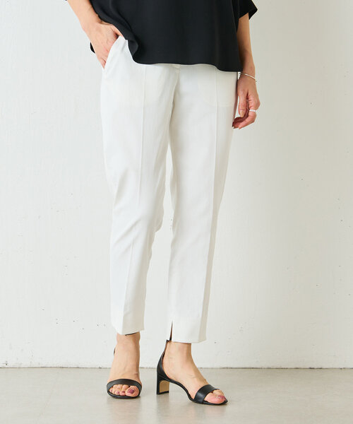 ■アイテム 雨の日の足元を気にせず履ける、撥水加工を施したパンツです。 センタープレス入りのテーパードで、お仕事からちょっとしたお出かけまで幅広く使えるきれいめなデザインになっています。 ストレッチ性があり、後ろゴム使用で履き心地も抜群です。 ※こちらは《LIVETART》のタグがつきます。 ▼おすすめスタイリングアイテム ケープポンチプルオーバー ■素材・洗濯表示 素材:ポリエステル100% 洗濯表示:手洗い可 ※着用時・洗濯時は、必ず取扱い表示・タグをご確認の上、お取り扱い下さい。 ------------------------ 伸縮性:ややあり 光沢:ややあり 厚み:ふつう 透け感:なし 裏地:なし ポケット:あり ファスナー:あり ------------------------ 《お取り扱い上のご注意》 ・タンブル乾燥不可 ・この製品ははっ水加工を施していますが防水ではありません。はっ水加工は着用や洗濯・クリーニングの繰り返しで徐々に低下します。 《予約商品について》 ・サンプルの為、素材情報、洗濯表示については企画段階の情報を記載しております。公的機関での試験データ結果を受け、量産にあたり混率や洗濯方法の変更が発生する場合がございますので、ご了承くださいませ。 ・サンプルでの撮影、計測をしております。商品の仕様が一部変更になる場合がございます。 ・撮影サンプル品はブランドタグがついておりません。製品にはタグがつきますので、製品の表に縫い糸が見える場合がございます。 ・工場の生産の都合上、納期が変更になる場合がございます。検品や輸送の関係で、発送日が前後しますのでご了承ください。また、入荷状況により、お客様への発送が店頭販売より遅れる場合もございます。 ・店頭に陳列していた商品も含まれる場合がございます。 《商品画像について》 ご覧頂いている商品の写真につきましては、できるだけ実物の色に近くなるように努めておりますが お使いの環境(モニター、ブラウザ等)の違いにより、色の見え方が実物と若干異なる場合がございます。 予めご了承ください。 《ハートをタップして商品のお気に入り登録》 登録カラーの商品の「残りわずか」「再入荷」「値下げ」通知を受け取ることができます。 各ショップアプリにてブランドフォロー 新商品などの入荷情報、最新のニュースやお得な情報を受け取ることができます。