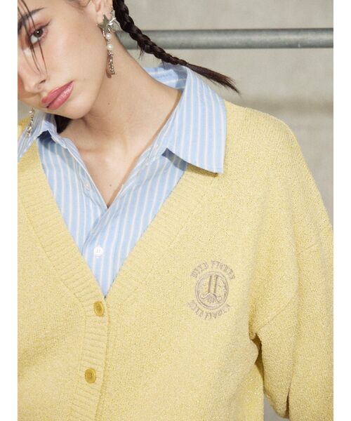 ■デザイン 左胸にワンポイント刺繍を入れたオーバーサイズのニットカーディガン。 ラメを引き揃えた、清涼感のある素材を使用しているため、春先まで着用しやすいさらっとした質感に仕上がっています。 ワンポイント刺繍は今季オリジナルのロゴデザインです。 柔らかい色味が春らしく手に取りたくなる1枚。 ■スタイリング デニム合わせなどラフな合わせはもちろん、 ヒップまで隠れるサイズ感なので、ミニボトムと合わせてワンピース風に着用するのもおすすめです。 インナーにシャツをレイヤードするのが今年らしくて◎ -------------- 透け感:なし 裏地:なし 生地の厚み:普通 伸縮性:あり -------------- ■公式インスタグラム @evris_official ZOZOTOWNに掲載してない入荷情報や 着用感、動画での紹介など随時更新中! ■商品のお気に入り登録 お気に入りアイテムの セール値下げ・再入荷・在庫1点など 重要情報の通知をGET! ■ブランドのお気に入り 登録新商品や再入荷、セール、クーポン配布など お得な情報の通知をGET!