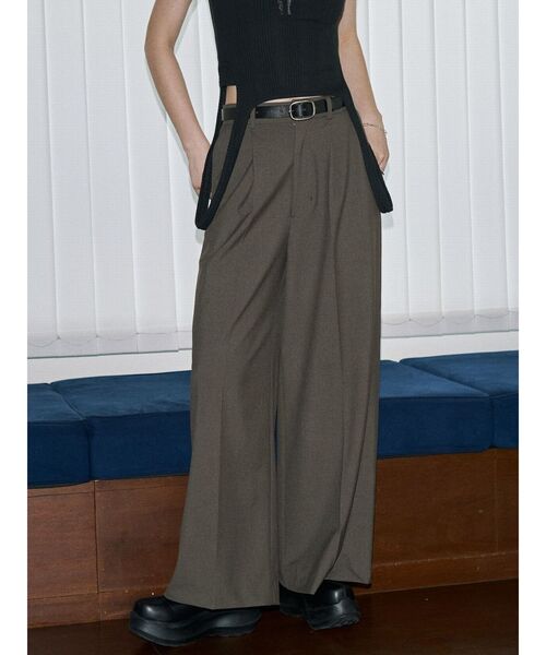 落ち感のあるシルエットが綺麗なワイドパンツ■デザイン落ち感のあるサージ素材を使用し、ゆったりと履いて頂ける素材を選びました。フロントはワンタックデザインにしすっきりとしながらもセンタープレスをいれて上質なシルエットに仕上げています。少しだけ裾にかけてすぼまっているので足元で裾が溜まるようなシルエットで着用して頂けます。SサイズとMサイズで股下丈を3cm差をつけているので高長身の方でもバランス良く合わせて頂けます。 ※着用画像はフラッシュの加減で実際の製品と色味等が異なる場合がございますので、生地のズームアップ画像をご確認ください。※ご利用の端末画面の設定により実際の商品と色味が異なる場合がございます。【商品特徴】透け感:なし伸縮性:なし生地の厚さ:普通サイズ感:ゆったり裏地:なしポケット:なし