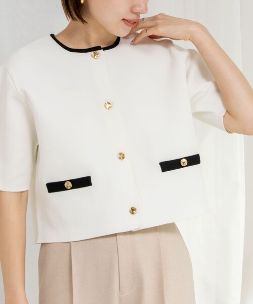 ◇25SS◇ NOLLEY'S ◆Point ・夏も活躍する5分袖のニットジャケット ・ハリがあり、フォルムが出やすく軽量なのが特徴の素材 ・ハイウエストボトムとバランス良く合わせられるクロップド丈 ・フェイクポケットもデザインポイント ・ジャケットほどきちんとしすぎず、オンオフ問わず気軽に着用できる1枚 ・同素材のフレアスカート(5-0035-2-02-005)とセットアップ着用も可能 ●お取扱い上のご注意● 末永くご愛用頂くために、アテンションタグを必ずご確認の上、着用又はお取り扱い下さい。 ※手洗い可 気になる商品は、お気に入り登録がオススメです! クーポン情報、入荷情報が、通知されるようになります。 ※店頭及び屋外での撮影画像は、光の当たり具合で色味が違って見える場合があります。商品の色味は、スタジオ撮影の画像をご参照下さい。 ※商品画像に関しては出来る限り忠実に表示出来るよう努めておりますが、お客様がご利用のモニターの設定及び特性により、実際の商品と比較し色味に若干の誤差が生じる場合があります。 ※画像の商品はサンプルとなりますので実際の商品と仕様、加工、サイズが若干異なる場合がございます。
