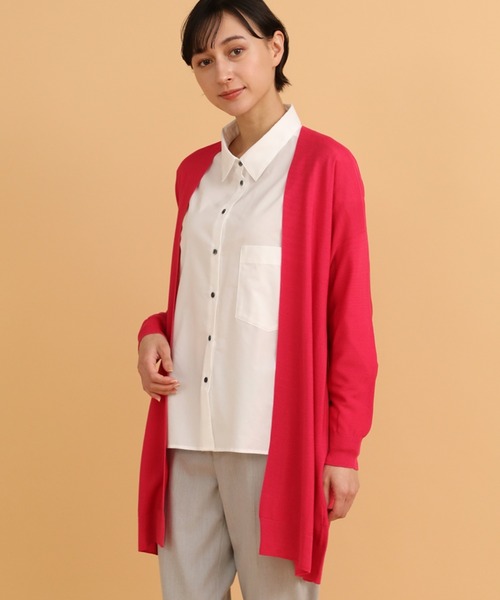 度なドレープ感とシルクのような美しい光沢感が特徴のロングニットカーディガン。スーパーハイゲージのホールガーメント®機で繊細に編み立てました。ゆったりとしながらも落ち感があり、すっきりとしたシルエットなのでどんなコーディネートにも合わせやすい一枚です。ガーター編みの凸凹のある表面感が特徴。同素材のプルオーバーニットとのセットアップも可能です。 ・水洗い可 《WHOLE GARMENT®/ホールガーメント®》 株式会社島精機製作所が独自で開発した世界初の無縫製ニット横編機によって編成された無縫製ニットウェア。ニット本来の手触りと軽さを引き立て、ドレープ性を高め、ごわつき感をもたらす縫い目をなくすことで、よりよい着心地感を実現します。 ※ WHOLEGARMENT®及び ホールガーメント®は、株式会社島精機製作所の登録商標です。 《Cuoo/クー》 フランドルがメーカーや工場の協力を得て開発した素材。肌に優しく、一年を通して快適な着心地を保つキュプラとポリエステルの交撚糸。キュプラは他の繊維と比べ、摩擦が少なく肌と触れ合っても刺激が少ないため、肌触りが良くやさしい着心地です。吸水性に優れ、べたつきにくくムレを抑えられます。夏はひんやり、冬は暖かく、通年にわたり心地よく着こなせます。 ■サンプル撮影商品■ こちらの商品はサンプルでの撮影となっております。実際の商品とは、サイズや色味、素材、デザイン等の仕様が若干変更になる場合がございます。