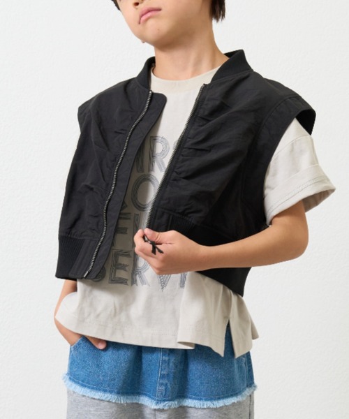 カジュアル定番のMA-1のベストが登場! コーデを簡単に格上げしてくれるおしゃれキッズアイテム♪ ■デザイン フロントにギャザーを寄せることで、より今年らしい印象に。 MA-1デザインで、カジュアルライクに仕上げました。 やや短めのクロップド丈でスタイルアップ見えも叶います。 重ねるだけでおしゃれ見えするベストは、シンプルになりがちな お子様のコーディネートにも大活躍間違いなし! \親子リンクはTYPY/ レディースのアイテムはこちら→【TYZ1051207A0003】 ■スタイリング どんなインナーともバランスよく決まるデザインです。 今の時期はスウェットやカットソーと合わせたコーディネートがおすすめ。 暖かくなれば、シアートップスやストライプシャツなどと合わせるのも◎ ■お手入れ方法 洗濯:洗濯機の手洗いモード(中性洗剤使用) アイロン:あて布を使用し110℃まで可 タンブル乾燥:不可 ・・・・・・・・・・・・・・・・・・・・・・ 透け感:なし 裏地:なし 伸縮性:なし 光沢感:なし 生地の厚さ:普通 ・・・・・・・・・・・・・・・・・・・・・・ ※サイズXXLはWEB限定です。 ※画像の商品はサンプルです。 実際の商品と仕様、加工、サイズ、素材が若干異なる場合がございます。 ※サイズ表記は下記ご参考くださいませ。 M(110~120)L(120~130)XL(130~140)XXL(140~150) ▼気になる商品をお気に入り登録 ハートをクリックして《お気に入り登録》がオススメです! ※画像の商品はサンプルを使用しております。実際の商品と若干の仕様が変更になる場合がございますので、予めご了承の上ご注文くださいますようお願いいたします ※屋外の光や照明の当たり具合で、実際の商品の色味とカラー別画像の色味に若干の違いが発生する場合がございます。詳細画像と併せてご確認の上、ご注文いただきますようお願い致します。 ※独自のタイムセールなどの施策により、実店舗と価格差が発生する場合がございます。 ※実際の店舗在庫につきましては、各店舗に直接お問い合わせください。
