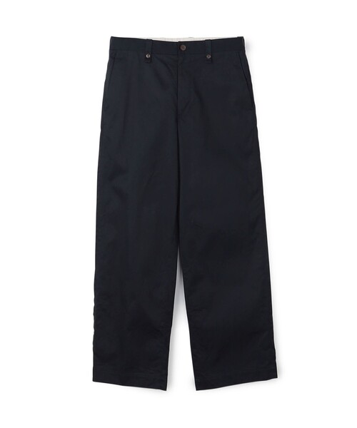 世界五大コットンの1つといわれるアメリカの最高品質超長綿スーピマコットンで織り上げたチノクロスを使用したパンツ。コンパクトスパン製法という糸毛羽を少なくする製糸方法にて作られたキレイな糸を、高密度でキッチリと織り上げた、美しさと堅牢性を兼ね備えた生地を使用しています。デザインはバレルパンツという「バレル(樽)」のようなシルエットが特徴。ウエストや腰回りはフィットしていながらヒップ辺りからワイドになってストレートに裾まで落ちるシルエットです。腰回りがスッキリとしているので、見た目が上品でありながら脚周りはゆとりのあるリラックスした履き心地です。カジュアルスタイルからジャケットスタイルまで、幅広くお使い頂けます。※商品の色味は、商品単体または素材アップ画像をご確認ください2025SS商品店舗にお問い合わせの際は、下記の商品番号をお申し付けください。商品番号:63-04-51-04002