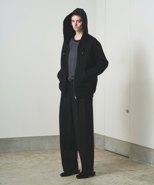 【TROVE SPRING SUMMER 2025】スーパー100原料 極細番手で織り上げたウールトロピカルクロス。軽く、サラッとした肌触りの春夏対応素材。滑らかなスイスコットンの半裏仕立てで快適な穿き心地。ロゴ入りのオリジナルマーベルト仕様。4ポケット仕様、前閉じファスナー、持ち出しを深めにとった優雅な設計。フロント2タック、緩やかなワイドシルエット。※同素材の"73SHT01"とセットアップで着用可能。ブランド品番:73PAN01