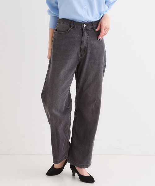 【デザイン】 大人の女性が着こなしやすい、程よくゆったりとしたシルエットにこだわりました。 ワイドでもすっきりとした印象に見せてくれる一本。 どんなアイテムと合わせてもこなれ感のあるカジュアルスタイルが完成します。 【スタイリング】 ブラウス合わせでカジュアルなお出かけスタイルや デザイントップスとの相性も良くおすすめです。 ワイドすぎないシルエットなので、腰回りが隠れる着丈のトップスやカーディガンを合わせたスタイルもバランスよく決まります。 【素材】 やわらかめのデニム素材。 【仕様】 ・ポケット数:横×2 後×2 ・前ファスナー ・裏地なし ※照明の関係により、実際よりも色味が違って見える場合があります。また、パソコン・スマートフォンなどの環境により、若干製品と画像のカラーが異なる場合もございます。 モデル情報:身長163cm B81 W59 H88 着用サイズ:02(M) 店舗へのお問い合わせ商品番号:C62-62026 ●製品寸法: 01(S):W62cm H90cm 股下66cm 前股上28cm 渡り幅29cm 裾幅23cm 02(M):W65cm H92cm 股下66cm 前股上28cm 渡り幅30cm 裾幅24cm 03(L):W68cm H95cm 股下67cm 前股上29cm 渡り幅31cm 裾幅25cm 04(LL):W72cm H98cm 股下67cm 前股上30cm 渡り幅32cm 裾幅26cm 備考: