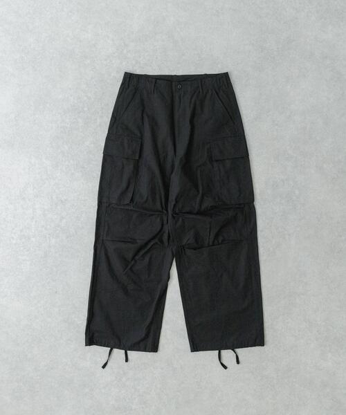 【タフな風合いとヴィンテージ感を兼ね備えた、大人のためのミリタリーカーゴ】 武骨なミリタリーの雰囲気と、こだわり抜いた染色加工によるヴィンテージ感が魅力のカーゴパンツ。 耐久性に優れたコットンリップストップ生地を使用し、染料染め×天然穀物を用いた顔料染めのダブル染色加工を施すことで、深みのある独特な色合いを実現しました。 さらに、製品洗いによるバイオウォッシュ加工で味わいのある風合いに仕上げています。ミリタリーカーゴをベースにしたワイドシルエットで、無骨ながらも洗練された一本です。 -MATERIAL- ・耐久性に優れたコットンリップストップ生地を採用 ・染料染め+天然穀物による顔料染めのダブル染色加工 ・バイオウォッシュ加工による味わい深いヴィンテージ感 -DESIGN- ・ミリタリーカーゴパンツをベースにしたクラシックなデザイン ・ワイドシルエットでリラックス感と存在感を両立 ・経年変化を楽しめる染色&加工技術を採用 -COORDINATE- ・無地のロンTやスウェットと合わせたシンプルなミリタリースタイル ・ショート丈のジャケットと合わせ、シルエットのバランスを楽しむコーディネート ・ブーツやローファーを合わせて、大人のラフなカジュアルスタイルに 【2025 Spring/Summer】【25SS】 ※この商品は、独特の風合いを表現するため、縫製後に洗い処理をしています。そのため、多少のゆがみやシワが出ていますがご了承ください。 ※顔料染めをしています。染色の特性上、洗濯を繰り返すと、色合いや風合いが変化します。 ※その他お取り扱いに関しましては、商品に付属のアテンションタグをご覧ください。 ※商品画像は、光の当たり具合やパソコンなどの閲覧環境により、実際の色味と異なって見える場合がございます。予めご了承ください。 ※商品の色味の目安は、商品単体の画像をご参照ください。 ▼お気に入り登録のおすすめ▼ お気に入り登録商品は、マイページにて現在の価格情報や在庫状況の確認が可能です。 お買い物リストの管理に是非ご利用下さい。 素材感 透け感 : なし 伸縮性 : なし 裏地 : なし 光沢 : なし ポケット : あり LM