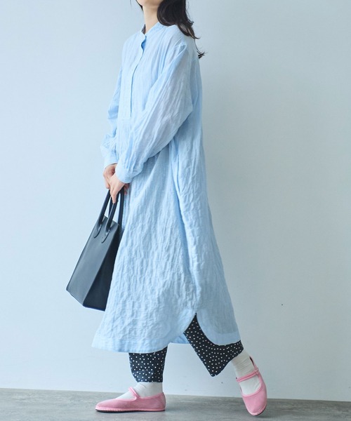 すこし頼りなさを感じる、くたっとしたストライプ。程よい透け感と表面感があり肌ばなれがいいので、汗ばむ季節がやってきても心地よく着ていただけます。ぴしっとしたシャツワンピースもすてきだけれど、柔らかなシワ感のある、ゆるっとしたワンピースもおすすめです。重ね着を楽しめる1枚です。●同シリーズ品番はこちら⇒ブラウス:0301BL011251============================透け感:あり裏地:なし伸縮性:なし光沢感:なし============================※素材の特性、お取り扱いの注意水洗い可・・・中性洗剤使用アイロン可・・・あて布使用・この製品に使用している生地は、大変デリケートな素材となっております。激しい運動や極度な力が加わると裂けたり縫い目が開く恐れがります。着用着脱時には十分注意して下さい。bulle de savon(ビュルデサボン)BRAND CONCEPT女性、誰もが ふっと子供の頃を思い出し 少女のような気持ちに戻れる服。 bulle de savon =シャボン玉の事 石鹸の泡とか、においなど、 懐かしい感じ。設立年月日 1994年8月※グリーン、サックスブルーはサンプルです。実際の商品と仕様・加工・サイズ等が若干異なる場合がございます。※モデルの着用画像は光の関係で商品の色味が若干異なります。※取り扱いの注意については取り扱い表示をよくご確認の上、着用をお願いいたします。※工場の生産の都合上、入荷の時期が前後する場合がございます。ご了承ください。