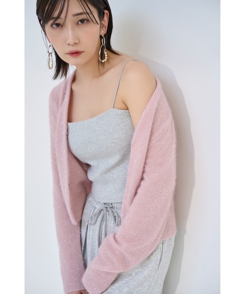 【品よく煌めくフェザーカーディガンで特別感のあるおしゃれを堪能】 【Design/Styling】 トレンドのキラキラとしたアイテムを大人っぽく取り入れたい方にぴったりな1枚です。 シルエットは、ボディラインに付かず離れずの絶妙なコンパクトなサイズで、合わせやすさ抜群。 また、キラッとした素材感を最大限に活かすために、ボタンではなくホックを採用してフロントをすっきりさせました。 ホックを全て閉めると深すぎないVネックになり、プルオーバー風コーディネートを楽しめます。 ※照明の関係により、実際よりも色味が違って見える場合があります。 またパソコン・スマートフォンなどの環境により、若干製品と画像のカラーが異なる場合もございます。予めご了承ください。 商品の色味は、商品単品画像をご参照下さい。 ※商品画像はサンプルのため、色味やサイズ等の仕様に変更がある場合がございますので、予めご了承ください。