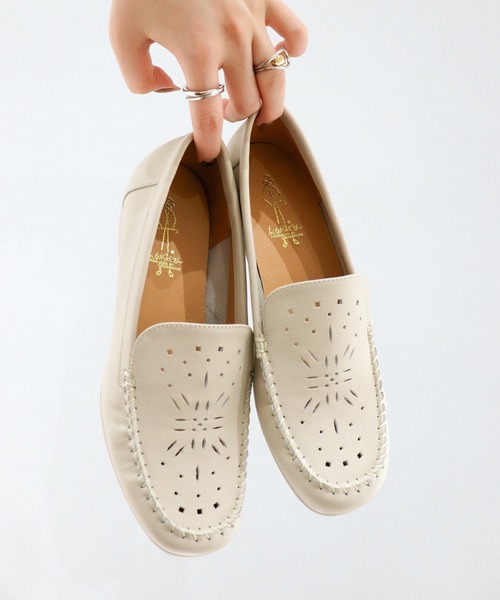- 2025 Spring&Summer - 軽量|ソフトモカシューズ ◆デザイン 柔らかく軽い履き心地で疲れ知らずのモカシューズ。パンチングを施したレザーは見た目にも涼し気で、サマーシューズとしてもおすすめです。靴下でも素足でも履ける気軽なアイテムです。 ◆ポイント ・ソフトレザーで足なじみが良い ・パンチングで通気性が良く蒸れにくい ・軽量ソールで1日履いても疲れない ◆素材 裏地:人工皮革 伸縮性:なし サイズ感:ちょうどいい 素材の柔らかさ:やわらかい 片足の重さ:約 180g ◆着用レビュー スタッフ Tomoko.M 足長 :23.4cm 足囲 :22.8cm/ワイズD(標準) 甲の高さ:5.9cm/標準 特徴 :エジプト型|メンズライク|パンツ派|低めヒール派|甲が薄く外反母趾。基本的にインソールを入れてます コメント: いつものサイズ23.5cmを着用しました。つま先がかなりピッタリに感じましたが、ピッタリにした方がカカトが抜けなくてちょうどよいです。幅が馴染みやすそうで、カカトはしっかりしています。甲が薄い人はソックスで合わせないと脱げやすいと思うので、色合わせが楽しめるソックスがいいと思います。落ち着いた雰囲気のライトグリーンで履いてみました。丸みのある可愛いデザインでも大人っぽく合わせられました。 ◆ あしながおじさん ”まわりとは少し違う、オリジナルな魅力いっぱいのカジュアルシューズ” ローファーやストラップパンプスといったクラシカルなアイテムからスニーカーまで、幅広いラインナップが揃っています。 コロンとしたシルエットにほんのりスパイスをきかせた靴たちがあなたの足もとを素敵に演出します。 Instagramアカウント:ashinagaojisan_gram INFORMATION・・・・・・・・・・・・・・ [商品について] ・画像の商品はサンプルです。実際の商品と仕様、加工、サイズ、素材が若干異なる場合がございます。 ・商品画像は、光の当たり具合やパソコンなどの閲覧環境により、実際の色味と異なって見える場合がございます。 ・商品の色味の目安は、商品単体の画像をご参照ください。 ・包装紙破損、箱破損、タグ破損につきましては商品に不良が無い場合に限り出荷させて頂いております。 ・厳選された素材を使用しておりますが、雨に濡れたり、汗による湿気、乾燥状態での摩擦により革が色落ちし、衣服や靴下などに色移りする可能性がございます。 [返品について] ・商品の性質上、ご着用後のご返品については お受けすることができません。あらかじめご了承ください。 ・修理依頼は、カスタマーサポートセンターお問い合わせ「ご注文に関するお問い合わせ」までご連絡ください。 ・・・・・・・・・・・・・・・・・・・・・・ 気になる商品にはぜひ「お気に入り登録♥」を [♥] アイテムをお気に入りに追加すると… 完売製品の再入荷や、在庫ラスト1点などの通知を受け取ることができます! [♥] ブランドをお気に入りに追加すると… 新商品情報や、再入荷などブランドの最新情報をいち早く受け取ることができます!