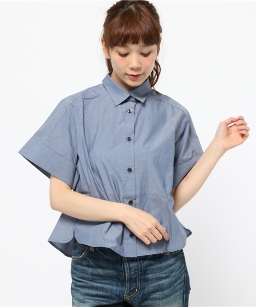 【Caiopanic】 先染め綿インディゴ80'sタイプライターSH しっかりとしたタイプライター生地を使ってボリュームをキープした、ワイドシルエットの半袖シャツ。風合い豊かな先染め綿を採用しつつ80's風のレトロ感も取り入れたデザインが、ひと味違ったカジュアルスタイルを楽しませてくれます。前後差を設けた裾丈で程よく軽さもプラスしました。
