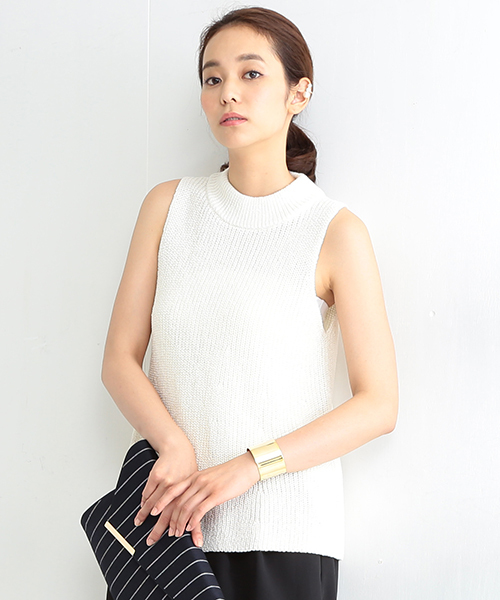 トレンドのハイネックデザインが目を惹く、ノースリーブニット。裾に向かってAラインに広がるフレアラインで、リラックス感のあるシルエットに仕上げました。 リネン混素材をざっくりと編み上げ、夏でもさらりと着心地の良いアイテム。ガウチョパンツと合わせた今年らしいスタイリングを楽しんでみてはいかがでしょう。 店舗へお問い合わせの際は下記品番をお伝えください。 品番:52-05-0031-012