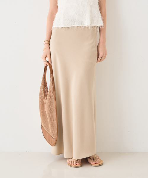 XS,S,Mサイズ展開!小柄さんにもおすすめロングスカート 動くたびに美しく揺れる、大人のエレガントスタイル。 しなやかで落ち感のある生地を使用し、上品な光沢感が魅力。 シワになりにくく、デイリー使いにも◎。 バイヤスカットならではの美しいフレアシルエットが特徴。 ウエストはすっきり見えしつつ、歩くたびにエレガントな動きを演出。 シンプルなトップスをインしてメリハリのあるコーデに。 春はカーディガンやシャツと合わせて軽やかに、 秋冬はニットと合わせてシーズンレスに着回し可能。 クリーニング方法:手洗い可 【注意事項】 ※商品画像は、光の当たり具合やパソコンなどの閲覧環境により、 実際の色味と異なって見える場合がございます。あらかじめご了承ください。 ※画像の商品はサンプルです。実際の商品と仕様、加工が若干異なる場合があります。 ※サイズ表記はあくまで目安となります。 ※その他の予約商品、通常商品との同時決済はできません。 ※入荷状況により、お届け予定が前後する場合があります。 ※お客様への発送が店頭販売より遅れる場合もあります。 ※追加生産商品は、一部の店舗、通販で販売中の場合がございます。予めご了承下さい。 ※商品を使用前に、タグ等に記載されている「取り扱い上の注意書き」「洗濯表示」を必ずご確認ください。 ※商品に不良が無い場合、包装紙および箱の彼損がございましても発送いたします。あらかじめご了承ください。 【商品のお気に入り登録】 完売カラーの再入荷通知や、ラスト1点の通知、プライスダウンしたセール通知も受け取ることができます。 【ブランドのお気に入り登録】 新作や再入荷等、いち早くブランドのお得な情報を受け取ることができます。 通勤/オフィスカジュアル/春/夏/秋/ロングスカート/ストレッチ/フェミニン/きれいめ/シンプル/デート/休日