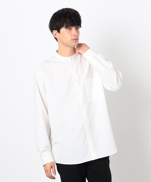 《デザイン》 羽織りとして使えるリラックスシルエットのバンドカラーシャツです。 1枚でも、ジャケットやブルゾンのインナーとしてもお使いいただけます。 従来のバンドカラーシャツよりも着丈を少し短くして、タックインした際にすっきりと着用できるようにしています。 ネックの形状を見直して、着用時の収まりを良くしました。 鎌底(アームホール下半分、脇に当たる部分)も少し浅くして、インナーとして重ね着し易い様にしています。 袖はタック分量を多めにとり袖口を細めていますので、ブラウジングする袖になっています。細長い剣ボロ仕様でごろつかず、ロールアップし易くなっています。 《素材》 スーツに使用されるウール梳毛素材のようなウールライクな表情の生地です。 伸縮性のある素材ですので、着心地に優れています。 素材に膨らみ感と、適度な張り感を持たせました。 また、サラッとした肌触りと程よいドレープのある風合いも特長です。 シワにもなりにくく、ご家庭での洗濯が可能なイージーケア素材です。 《取り扱い注意》 お洗濯は洗濯機の弱洗いのみです。 ドライクリーニングは不可です。 アイロンは必ず弱であて布を使用して下さい。 強い日光(又は照明等)を長時間受けますと、変色の恐れがありますので、ご着用及び保管の際にはご注意下さい。 素材風合いの性質上、ピリング(毛玉)が発生する場合がありますのでご了承下さい。 強い力が加わると、破れたり裂けたりする事があり、縫い目が開いたり、目寄れ(織り糸が滑り目が開く)する性質を持っていますので、十分ご注意下さい。 …………………… 透け感:なし 厚さ:ふつう 伸縮性:あり 光沢感:なし 裏地:なし 洗濯方法:洗濯機洗い可 …………………… ※画像の商品はサンプルとなりますので実際の商品と仕様、加工、サイズが若干異なる場合がございます。 ※こちらの商品はFIVE FOXes独自の採寸方法となっています。 本サイトのサイズガイドと採寸方法が異なる場合がありますのでご了承ください。 ※画像の商品はサンプルとなりますので実際の商品と仕様、加工、サイズが若干異なる場合がございます。 ※こちらの商品はFIVE FOXes独自の採寸方法となっています。 本サイトのサイズガイドと採寸方法が異なる場合がありますのでご了承ください。