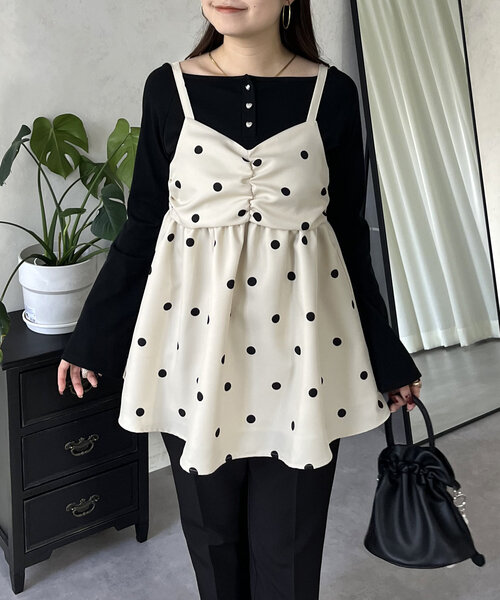 コーデのアクセントになるドットビスチェ ●着るだけでコーデが一気に華やかに ●インナー次第で様々な季節で活躍 ●アジャスター付きで長さ調節可能です ●ペプラムデザインで体型カバーもばっちり◎ ●バック部分はゴムでラクチンな着心地 ビスチェ/ドット/着回し/大人可愛い -------------------------------------------------------------- 生地の厚さ:普通 伸縮性:バストバック部分のみあり 透け感:なし 裏地:あり 洗濯方法:ご自宅で手洗い可 -------------------------------------------------------------- ※商品のお取り扱いに関しましては、商品に付属の アテンションカード、洗濯ネームをご覧ください。 ※撮影場所やお使いのモニター環境により若干お色味が 異なる場合がございます。 特にロケの撮影では明るく見える傾向にございます。 ※サイト上ではフリーサイズの表記ですが、商品タグには Mサイズと表記されている場合がございます。 その場合、ワンサイズでのご用意となりますのでサイズミス などではございません。詳しいサイズはサイズスペックを ご確認いただきますようお願い致します。 ※サイト上でのカラー名とお届けした商品に記載されている カラー名が異なる場合がございますので予めご了承ください。 <返品・キャンセルについて> ・着用・洗濯後の返品は致しかねます。 ・商品到着後、着用前に商品を確認して頂きますようお願い致します