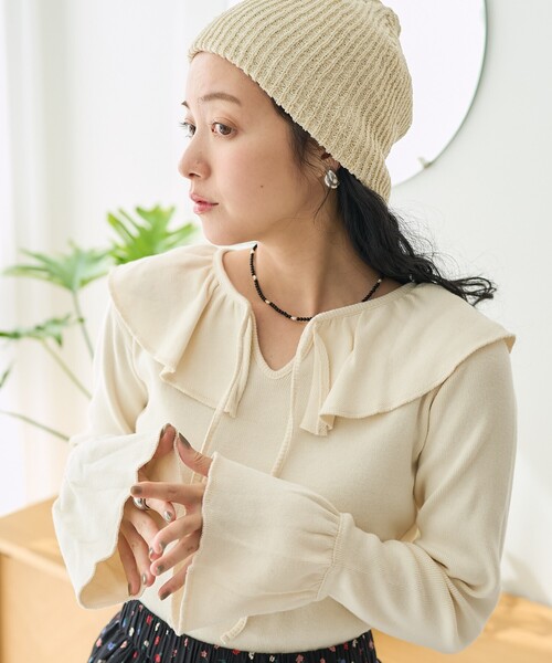 2025 Spring & Summer itemヴィンテージライクな柔らかな質感で着心地抜群カジュアルフェミニンなフリルロンT●古着のフライスインナーイメージしたコットン生地を使用したカットソー●ネックと袖のフリルをあしらいデコラティブなデザインに●ヴィンテージのようなくったりとした風合いと肌触りの良い生地感も魅力●リボンは結んでも垂らしても可愛いです●程よいフィット感で適度な余白を残し、華奢見えしますおすすめコーディネート一枚で着てシンプルなスタイリングならタックインしてワイドパンツを合わせるのがおすすめ。レイヤードなら、カーディガンやベストを重ねて襟と袖口からフリルを出して着るのが可愛いです。--------------------------------------------------------お気に入り登録のオススメ▼商品のお気に入り登録▼再入荷、残り1点、セールなどの通知を受け取ることができます。▼ブランドのお気に入り登録▼新商品や再入荷、ショップのおすすめトピックスなど、いち早くブランドの情報を受け取ることができます。-------------------------------------------------------- ※こちらの商品は、弊社管理上のカラーを表記しております為、タグのカラー表記と異なる記載となっております。【サイト表記:タグ表記】・オフホワイト:OFF・グレー:GREIGE・チャコールグレー:CHARCOAL※掲載画像の商品の色味は、屋外や屋内の光の照射や角度により実物と色味が異なる場合がございます。また表示のサイズ感と実物は若干異なる場合もございますので、予めご了承ください。※着用、お取り扱いの際は、商品についている品質表示とアテンションタグを必ずご確認下さい。【FREAK'S STORE/フリークスストア】「アメリカの豊かさとワクワク・ドキドキを日本に伝えたい」という想いからスタート。1986年の創業以来、洋服、雑貨、インテリアなど自分たちが本気でカッコ良いと思うものをセレクト。積極的に楽しむ生活体験者=フリークとして、アメリカンライフスタイルの楽しみ方を提案するセレクトショップです。