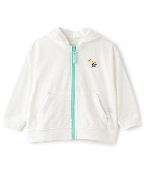 ショベルカーのワンポイント刺しゅうが目を引くジップアップパーカです。 身生地には清涼感のあるシャドーボーダーを使用しました。 接触冷感やUVカットをほどこしており、機能性が充実しているのも魅力。 フードはスナップボタンで簡単に着脱が可能です。 内側にお名前を記入できるタグがついています。 【透け感】やや透ける 【生地の厚さ】普通 【伸縮性】あり 【裏地】なし 【ポケット】あり 【アジャスター】なし 乗り物/働く車