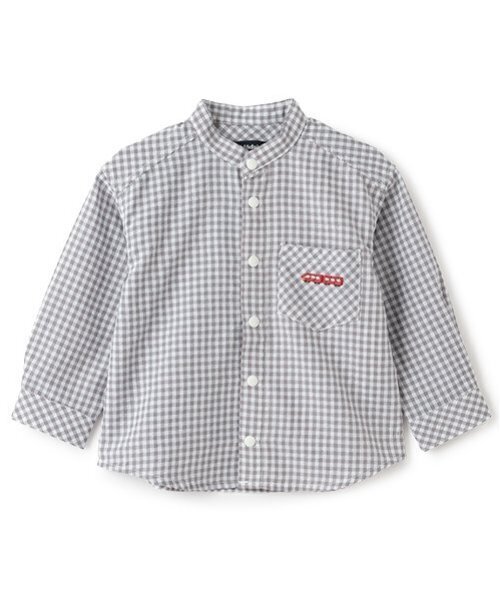 凹凸感のあるサッカー生地で着心地良好なバンドカラーの長袖シャツです。お出掛けからカジュアルまで幅広く使えるトラッドなデザイン。胸元とヨークにあしらった電車の刺しゅうがアクセントをプラスします。フロントはスナップボタン仕様のため、着脱も楽々です。内側にお名前を記入できるタグつき。【透け感】透けない【生地の厚さ】普通【伸縮性】なし【裏地】なし【ポケット】あり【アジャスター】なし乗り物