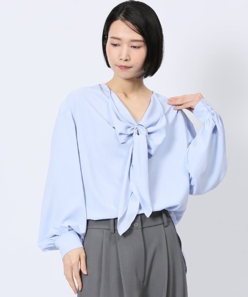 ■素材特徴 程良い落ち感のあるポリエステル素材を使用しています。なめらかな風合いで肌離れが良く、柔らかくて軽やかな着心地が魅力です。 ■機能 【ハンドウォッシャブル】手洗いが可能なので、清潔に着ていただけます。 ■デザイン 一枚着るだけでサマになる、長袖のプルオーバーブラウスです。首にスカーフを巻いたようなドレープ感のあるリボン、袖口のカフス仕様、前後差のある着丈バランス、すっきり見える両脇のサイドスリットがポイントになっています。 ■シルエット リラックス感のある、ややゆったりとしたシルエットです。チュニック丈なので、気になる背中やウエスト、ヒップラインを隠しつつお洒落に体型カバーが可能です。 ■コーディネート 綺麗目なテーパードパンツやフレアスカートに合わせるとバランス良くまとまります。キチンと感があるので、プライベートやオフィスカジュアルにオンオフ兼用で大活躍してくれます。一枚で着るのはもちろん、ニットを上から重ねてリボンの結び目をチラッと覗かせるのもおすすめです。 フィット感:ややゆったり シーズン:春夏 展開カラー:白(ホワイト)・サックス・紺(ネイビー) *アテンションタグ・洗濯ネームを御確認の上、着用又は取り扱い下さい。 *光の当たる場所や高温多湿になる場所での保管は避けて下さい。 *使用の有無に関わらず、経年劣化は進行いたしますのでご了承下さい。 *閲覧デバイス・環境により質感・色味に誤差が生じる場合がございます。 * ZOZOTOWN お買い物ガイド 商品のお気に入り登録 ♡をクリックしましょう!完売カラーの再入荷通知や、ラスト1点の通知、セールの通知をお知らせします。 ブランドのお気に入り登録 新商品や再入荷など、いち早くお得な情報を受け取ることができます。 最短で翌日お届け 商品をカートに入れた後、注文内容の確認ページで「即日配送」を選択していただければ、最短でご注文した翌日にお届け致します。 (ZOZOTOWNお買いものガイドをご参照ください)