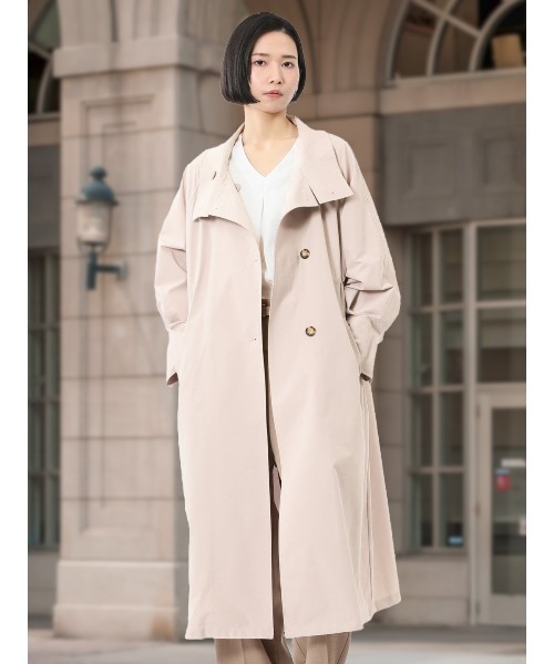 ■素材特徴 ポリエステル100%の綺麗目な布帛生地を使用しています。上品な光沢感、柔らかなドレープ、優れたストレッチ性が特徴です。 ■機能 【ストレッチ】伸縮性に優れ動きやすく、長時間の着用もストレスフリー。 ■デザイン スタンドカラーとテーラード、二通りの着こなしが楽しめるトレンチコートです。袖口カフスとウエストのドローコードがポイント。前開きでサラッと羽織った抜け感のあるスタイルや、ウエストを絞ったメリハリのあるスタイル等、着こなしのアレンジを楽しめます。裏無しの仕立てなので、分量感はありながらも軽く羽織ることができます。 ■シルエット 幅広い年代の方に着ていただける、ややゆったりとしたロング丈のAラインシルエットです。身体のラインを拾わず、リラックスした雰囲気に仕上げています。 ■コーディネート 綺麗目なアイテムと合わせて毎日の通勤スタイルに、カジュアルダウンして休日のタウンユースにと、オンオフ兼用で大活躍してくれます。風の強い日や少し肌寒い時など、春先のスプリングコートとして便利な一枚です。カラーパンツを合わせた春らしいスタイリングや、プリーツスカートを合わせたフェミニンスタイルもおすすめです。 フィット感:ややゆったり シーズン:春夏 展開カラー:ベージュ・クリーム 裏地:無し *アテンションタグ・洗濯ネームを御確認の上、着用又は取り扱い下さい。 *光の当たる場所や高温多湿になる場所での保管は避けて下さい。 *使用の有無に関わらず、経年劣化は進行いたしますのでご了承下さい。 *生地の裁断・縫製方法により、写真と同様の柄が出ない場合がございます。 *閲覧デバイス・環境により質感・色味に誤差が生じる場合がございます。* ZOZOTOWN お買い物ガイド 商品のお気に入り登録 ♡をクリックしましょう!完売カラーの再入荷通知や、ラスト1点の通知、セールの通知をお知らせします。 ブランドのお気に入り登録 新商品や再入荷など、いち早くお得な情報を受け取ることができます。 最短で翌日お届け 商品をカートに入れた後、注文内容の確認ページで「即日配送」を選択していただければ、最短でご注文した翌日にお届け致します。 (ZOZOTOWNお買いものガイドをご参照ください)