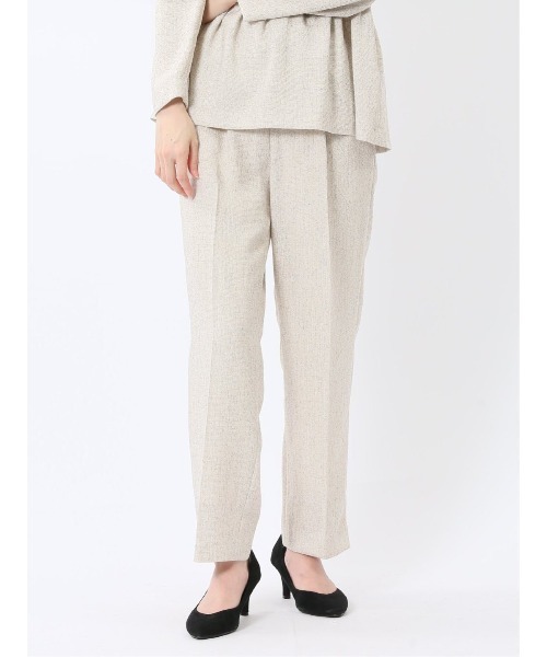 ■素材特徴 ポリエステルにレーヨンを混紡した薄手のツイード素材を使用しています。ざっくりとした表面感が特徴です。 ■デザイン ノータックのストレートパンツです。センタープレスでキチンと感のある印象に仕上げています。ウエストはバックシャーリングで着用ストレスを軽減。前ファスナー仕様、前シームポケット付きです。 ■シルエット ストンとした直線のラインが美しいストレートシルエットです。脚のラインを拾いすぎないので体型カバーや脚長効果も期待できます。裾部分は加工済みです。(M:65.3-L:66.5cm・シングル仕上げ) ■コーディネート 同素材のアイテムと合わせると、よりキチンと見えします。プライベートやオフィスカジュアルはもちろん、セレモニーやオケージョンなど、ハレの日のフォーマルシーンにも大活躍してくれます。 ■セットアップアイテムは下記品番をご参照ください。 ・ツイードペプラム 長袖プルオーバーブラウス:120133123501533 フィット感:標準 シーズン:春夏 展開カラー:アイボリー・紺(ネイビー) 裏地:有り *こちらの商品はセット販売ではなく、単品のみの販売となります。 *アテンションタグ・洗濯ネームを御確認の上、着用又は取り扱い下さい。 *光の当たる場所や高温多湿になる場所での保管は避けて下さい。 *使用の有無に関わらず、経年劣化は進行いたしますのでご了承下さい。 *閲覧デバイス・環境により質感・色味に誤差が生じる場合がございます。 * ZOZOTOWN お買い物ガイド 商品のお気に入り登録 ♡をクリックしましょう!完売カラーの再入荷通知や、ラスト1点の通知、セールの通知をお知らせします。 ブランドのお気に入り登録 新商品や再入荷など、いち早くお得な情報を受け取ることができます。 最短で翌日お届け 商品をカートに入れた後、注文内容の確認ページで「即日配送」を選択していただければ、最短でご注文した翌日にお届け致します。 (ZOZOTOWNお買いものガイドをご参照ください) ビジネス 通勤 面接 就活 リクルート フォーマル 新生活 婚活 記念日 授業参観 参観日 敬老の日 卒入 ハレの日 入学式 入園式 卒業式 卒園式 セレモニー オケージョン ブライダル 結婚式 ウェディング パーティー プレゼント・ギフト ベーシック 定番 20代 30代 40代 アダルト シニア 等幅広いシーンやスタイルに活躍してくれます。