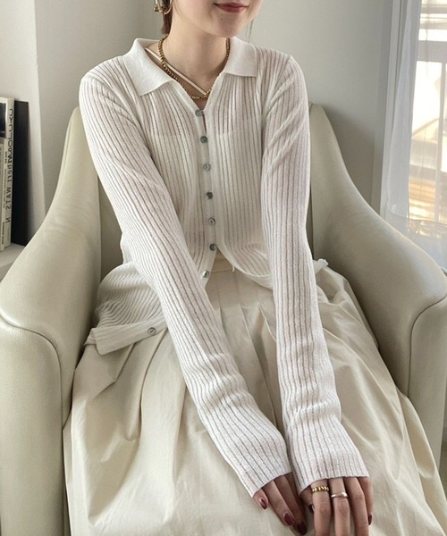 シルエットが華奢見え効果、透け感が女性らしくヘルシーな印象を引き出すシアーカーディガン。◆2025春夏◆ <POINT>・ラインを拾いすぎず、身体に沿うシルエットで華奢見え効果も叶えます・短すぎない丈感でナチュラルに体型カバーし、すっきり見え・フロントボタンと襟付きポロデザインがきちんと見えするので通勤はもちろん、ちょっとしたお出かけやワンピースなのど羽織りにもお使いいただけます・季節の変わり目や、夏の冷房対策、紫外線対策としてもさらっと羽織りやすく、サマーカーディガンとしても便利・羽織としてはもちろん、前ボタンを閉じて、プルオーバーとして着ても着映えする1枚・デコルテを綺麗に見せる、スキッパー風の襟ぐり・シャリ感のあるシアー素材で肌に張り付かず、サラッとした手触り【デザイン・シルエット】羽織としても一枚着としても活躍する、夏に映えるラメ糸を混ぜたサマーニットカーディガン。抜け感がありながらもコンパクトシルエットと、トレンドのポロ衿と多釦デザインで女性らしさを演出。シェルボタンを使用することでカジュアルの中にも華奢で上品見えするデザインに仕上げました。 【素材】微光沢ラメとトレンドのシアー感のあるポリエステル素材。程よいシャリ感としわになりにくいのが特徴。ドライタッチで肌離れの良い素材。 【カラー】コーデを華やかにするピンク、綺麗めスタイルにも取り入れやすいチャコールグレー、涼しげで爽やかなオフ白の3色展開。 【おすすめのスタイリング】 ボタンを全て閉めてプルオーバーとしても、肩からかけたりたすき掛けコーデなど1枚でコーデの幅が広がります。体に沿うシルエットなので、ワイドなボトムともバランス良く着用していただけます。パンツでかっこよくも、スカートでキレイめにも、様々なテイストにマッチします。 ----------------------------- 裏地:なし 光沢感:なし 透け感:ややあり 伸縮性:なし ボタン:あり(開閉可) 生地の厚さ:やや薄手 季節:春、夏、初秋 ----------------------------- 【モデル着用サイズ】 全色モデル身長:168cm、着用サイズ:F 詳細以降のモデル身長:164cm、骨格:骨格:ナチュラルとストレートのミックス、着用サイズ:F ※画像の商品はサンプルです。 実際の商品と仕様、加工、サイズが若干異なる場合がございます。 ※画像によっては実際の色味と異なる場合があります。正しい色味は生地アップ画像をご確認ください。