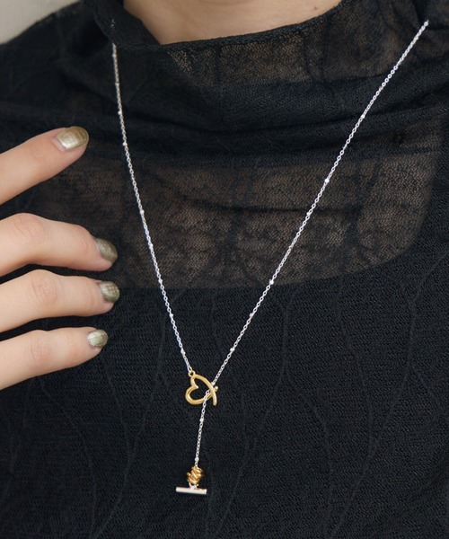 繊細なチェーンとハートモチーフがかわいい華奢ネックレスオープンハートのパーツを使用したマンテルタイプのネックレス。Coil部分は移動させて使用出来ますので、色々位置にもってきてアレンジして使うことが可能です。すっきりとしたY字のシルエットがスタイリッシュさを演出してくれます。【APUIS/ラピュイ】這う。 沿う。 彩る。マテリアルと曲線が織りなす装飾。自然やアートからのインスピレーションを元に繊細で、美しく、日常と洋服の中に佇む存在でありたい。---------------------------------------------------●お気に入り登録でお得情報を手に入れよう!「商品のお気に入り登録」をすると、再入荷通知や、ラスト1点の通知、セールの通知など、お得情報が届きます。また、マイページでいつでも確認が可能になります。「ブランドのお気に入り登録」をすると、新商品や再入荷、などいち早くブランドの最新情報をお届けします。ぜひ、ご利用ください。----------------------------------------------------