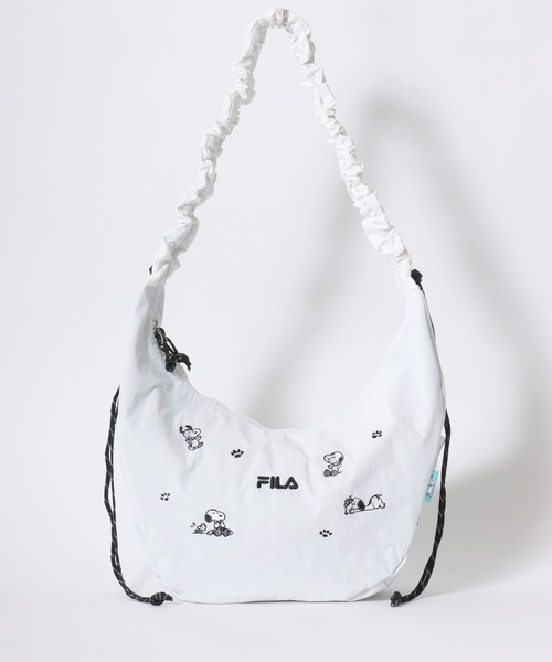 FILA×PEANUTS(フィラ ピーナッツ)コラボ SNOOPYスヌーピーくしゅくしゅハンドルショルダーバッグ人気スポーツブランド”FILA”とPEANUTSの人気キャラクター"スヌーピー"のコラボアイテムが登場!【 Point 】◆光沢感のある生地を使用したトレンドのビッグショルダーバッグ◆スヌーピーのキャラクターが刺繍でちりばめられたかわいいデザイン◆ショルダー紐部分のドローコードを絞る事でくしゅくしゅ感を調節できるので、お好みの長さでお持ちいただけます◆底マチがあるので収納力抜群。A4サイズの書類が収納可能です◆内ポケットはファスナー付きなのでiphone・スマートフォンやカギなどの小物を入れておくのにぴったり◎◆ポケット詳細・サイドポケット×2【 Styling 】今っぽいビッグショルダーバッグには、ダウンジャケット、ナイロンジャケット、トラックジャケットといったアウターにスニーカーやブーツを合わせて。カーゴパンツやデニムワイドパンツとナップサックを合わせればラフでこなれたストリートスタイルが完成します。TシャツやロンT、スウェットパンツを合わせるだけでバランスの取れたカジュアルコーデに。スウェットトレーナーを重ねてストリートライクに仕上げたり、チェックシャツやデニムシャツを合わせてちょっぴり大人っぽく着こなすのもおすすめです。ゆるめのトップスとの相性も抜群なので、季節の変わり目にはジップパーカーやデニムジャケットを羽織ってロングシーズン楽しめる万能アイテム。キャップやハットをかぶり、サングラスやシルバーアクセなどの小物をプラスするのがおすすめ◎シャギーニットカーディガンにロングスカートで女性らしく。ミニスカートとロングブーツにパンプスで韓国ファッションのスタイリングにもおすすめ。ベロアビスチェやフェイクファーベストを使ってスタイリングすればいつもよりちょっと個性的で今年らしい印象になるかも♪【 FILA/フィラ 】1911年イタリアのビエッラにおいてフィラ兄弟によって創業。1970年代にスポーツウェアの分野に進出し、プロテニス選手のビョルン・ボルグへのスポンサード活動で知られた。それまで白一色だったテニスウェアに色を加えたデザインは、当時の人々から一躍注目を集めた。1980年代から90年代にかけて、FILAを着用するスポーツ選手やアーティストが増えるとともに、 「ちょっとおしゃれ」なスポーツウェアとして広く認知。そして2010年代、スポーツライフスタイルの提案に留まらず、ストリートブランドとして確固たる地位を築いている。【 PEANUTS/ピーナッツ 】チャールズ・M・シュルツ氏によるアメリカ合衆国のコミック、およびそれを原作とするアニメ作品。コミック「ピーナッツ」は1950年10月2日アメリカの新聞7紙で連載がスタートし、お誕生日プレゼントとして取った5週間の休暇以外、約半世紀に渡って1日も休まず連載。作中に登場する犬のキャラクター「スヌーピー」がとくに知られており、世界中で愛されています。【 Information 】・「商品のお気に入り登録」 再入荷通知や、ラストの通知、セール通知も受け取ることができます。・「ブランドのお気に入り登録」 新商品や再入荷など、お得な情報を受け取ることができます・「SNS」 最新情報やコーデ紹介を更新中♪ ぜひフォローお待ちしております^^ Instagram @salonghameu TikTok @salonghameu★━━━━━━━━━━━━━━━━━★ Salong hameu (サロンハミュー) ★━━━━━━━━━━━━━━━━━★日々のスタイルに刺激とトキメキを。世界中国内外からセレクトしたブランドと彩り豊かなオリジナルアイテムをプチプライスでジェンダーレスに提案するショップ。--------------------------------------------[素材混率]カラー名: ホワイト、ブラック表地: ナイロン100% 裏地: ポリエステル100%カラー名: シルバー[表地] 表側 ポリウレタン100% 裏側: ポリエステル100% [裏地] ポリエステル100%
