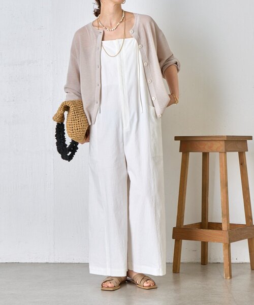 -商品ポイント- ・大人カジュアルコーデが楽しめる一枚で楽ちんのサロペット。 ・ベアトップ感覚で着れて少しウエストシェイプ感があり美シルエットに◎ ・肩ひもがアジャスター付きなので着丈調整していただけます。 ・身体のラインを拾いにくく、スタイルアップ効果も期待できる1枚です! ・サンダルやヒールできれいめカジュアルスタイルも楽しめます。 ースタッフ着用コメントー ・身長:153cm / 体型:やせ型 / 普段着用サイズ:S~M 夏になるとコーデがシンプルになりがちですが、このサロペがあるだけでシンプルだけどオシャレに決まるのが好きで、2色買いしました! 153cmの私は肩紐を最短にしてスニーカーやヒールを合わせて着ています◎ ・身長:149cm / 体型:ぽっちゃり / 普段着用サイズ:M~L 149cmの私だと肩紐を一番短くしてヒールかスニーカーを合わせて着れる感じでした。 ぺたんこのサンダルなどで合わせたければ丈直しした方が良いかもしれません。 お腹や太もも部分は余裕があるのでぽっちゃりな私でも着やすかったです。 ・身長:152cm / 体型:ぽっちゃり / 普段着用サイズ:L~XL ストレッチ、着心地抜群サロペット 上半身がスッキリしていて裾に向けての ワイドシルエットが体のラインを拾いすぎずにスッキリ見えが叶います。 伸びる生地なので、152cmぽっちゃりの私でも窮屈感なく楽ちんにお召しいただけます。 サイドのポケットがあるので前から見た時にスッキリ見えが叶います。 ・身長:165cm / 体型:標準 / 普段着用サイズ:L~XL 昨年購入し、大活躍しました!普段使いはもちろん、旅行には必ず持っていくってぐらい使いすぎて、買い直したいぐらい… 伸縮性があってとにかく動きやすいサロペットです! サロペットは子供っぽくなりやすい?アイテムだなと思っていましたが、細めのストラップのデザインが子供っぽい印象を払拭!インナーはなるべくスッキリしたサイズ感のものにしてもらうとより、お洒落に着こなせます。 サイズ調整できるショルダーなので、165cmでも丈は安心です! ーマテリアルー ■透け感:なし ■裏地:なし ■伸縮性:あり ■光沢感:なし ー洗濯方法ー 手洗い可能 ー注意事項ー 商品の画像はできるだけ実物に近い色味で掲載しておりますが、ご覧になるモニターや照明の環境により、実際の色味と若干異なって見える場合がございます。 あらかじめご了承くださいませ。 ・画像の商品はサンプルです。 実際の商品と仕様、加工が若干異なる場合があります。 ・サイズ表記はあくまで目安となります。 __________________________________ ※取り扱いについては、商品についている品質表示でご確認ください。 ※照明の関係により、実際よりも色味が違って見える場合があります。 またパソコン・スマートフォンなどの環境により、若干製品と画像のカラーが異なる場合もございます。予めご了承ください。 ※詳細画像の色合いをご参照ください。予めご了承ください。 __________________________________ 【お買い物をよりお楽しみいただくために♪ 】 ▼ 商品のお気に入り登録 お気に入りアイテムのお値下げ・再入荷・在庫ラスト1点など通知を受けることができます。 ▼ブランドのお気に入り登録 Jena espace merveilleuxの新商品や再入荷、セール、クーポン配布などお得な情報を受けることができます。