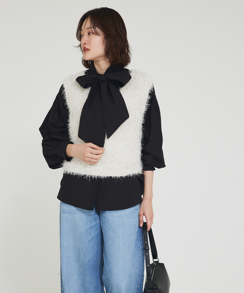 大人の抜け感、シアーボウタイで春支度 *Detail* 透け感が上品なシアーボウタイブラウス。 柔らかなシフォン素材が軽やかで、結ぶ位置で印象を変えられるボウタイデザインが魅力。 *Coordinate* オフィスではシアーブラウス×ニットベスト×テーパードパンツできれいめに。 カジュアルにはデニムと合わせて抜け感を演出。 単品使いはもちろん、ラメシャギーニットベスト(32503040000)とのレイヤードでシアーに抵抗がある方でも挑戦しやすいコーデです。 【商品のお気に入り登録】 完売カラーの再入荷通知や、ラスト1点の通知、プライスダウンしたセール通知も受け取ることができます。 【ブランドのお気に入り登録】 新作や再入荷等、いち早くブランドのお得な情報を受け取ることができます。