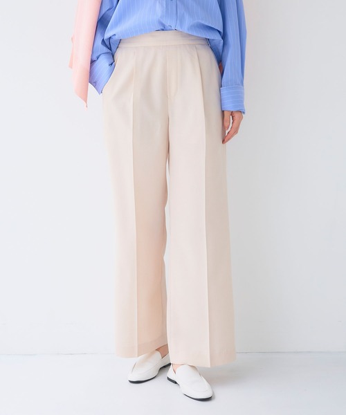 軽くてきれい オンオフ問わず毎日履きたいイージーケアボトム ■サマ美えとは? シンプルながらもこだわりのシルエットで美しさを追求した、着るだけでサマになるシリーズ。 お家でのお手入れのしやすさも備わり、いつでもサマ見えコーデを支えてくれます。 《嬉しい4つの機能》 1.洗える 汗をかいても、汚れてしまってもおうちで洗えるから安心。 2.シワになりにくい シワを気にせず、きちんと見え。お手入れ簡単なのが嬉しい。 3. UVカット UV対策機能付きで紫外線から肌を守ります。 4. 接触冷感 ひんやりタッチの接触冷感で夏場も快適に。 【デザイン】 ・程よい太さがクセになるセミワイドシルエットで、上品さも抜け感も叶える1着。 ・センタープレス仕様できちんと感を演出します。 ・後ろゴム仕様で楽な履き心地なのも嬉しい◎・ベーシックなデザインでどんなアイテムとも合わせやすく、汎用性の高い万能ボトムです。 ・ポケット付き。 【コーディネート】 ・同素材のジャケット(品番:954004)も展開。セットアップでも着用いただくのもおすすめ。 ・さらっとしたきれいめな素材でオフィススタイルでも活躍。 ・Tシャツなどカジュアルなアイテムと合わせればデイリーコーデにも着回しできる万能な1本です。 【サイズ展開】 Mサイズ Lサイズ LLサイズ モデル身長:168cm/169cm 着用サイズ:Mサイズ 【洗濯・取り扱い】 洗濯:ネットを使用して洗濯可能 アイロン:アイロン可 乾燥:タンブル乾燥不可 ------------------------------------- 透け感:ややあり 伸縮性:ややあり 厚み:普通 裏地:なし 洗濯:可 -------------------------------------- ※撮影時のライティング、ご覧になっているモニター・PC環境により実際の商品と色味が異なって見える場合がございます。ご了承の上お買い求め下さい。