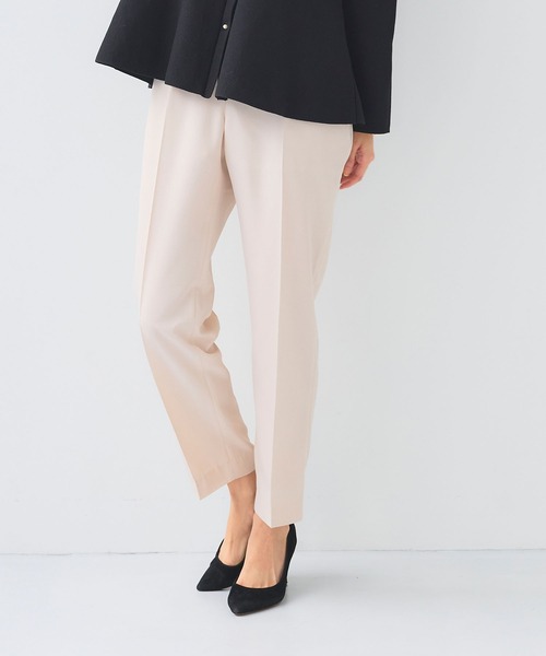 軽くてきれい オンオフ問わず毎日履きたいイージーケアボトム ■サマ美えとは? シンプルながらもこだわりのシルエットで美しさを追求した、着るだけでサマになるシリーズ。 お家でのお手入れのしやすさも備わり、いつでもサマ見えコーデを支えてくれます。 《嬉しい4つの機能》 1.洗える 汗をかいても、汚れてしまってもおうちで洗えるから安心。 2.シワになりにくい シワを気にせず、きちんと見え。お手入れ簡単なのが嬉しい。 3. UVカット UV対策機能付きで紫外線から肌を守ります。 4. 接触冷感 ひんやりタッチの接触冷感で夏場も快適に。 【デザイン】 ・タックを入れてシルエットにこだわったきれいめテーパードパンツ。 ・センタープレス仕様できちんと感を演出。 ・後ろゴム仕様で楽な履き心地なのも嬉しい1本です◎ ・ベーシックなデザインでどんなアイテムとも合わせやすく、汎用性の高い万能ボトム。 ・ポケット付き。 【コーディネート】 ・同素材のジャケット(品番:954004)も展開。セットアップでも着用いただくのもおすすめ。 ・さらっとしたきれいめな素材でオフィススタイルでも活躍。 ・Tシャツなどカジュアルなアイテムと合わせればデイリーコーデにも着回しできる万能な1本です。 【サイズ展開】 Mサイズ Lサイズ LLサイズ モデル身長:168cm/169cm 着用サイズ:Mサイズ 【洗濯・取り扱い】 洗濯:ネットを使用して洗濯可能 アイロン:アイロン可 乾燥:タンブル乾燥不可 ------------------------------------- 透け感:ややあり 伸縮性:ややあり 厚み:普通 裏地:なし 洗濯:可 -------------------------------------- ※撮影時のライティング、ご覧になっているモニター・PC環境により実際の商品と色味が異なって見える場合がございます。ご了承の上お買い求め下さい。