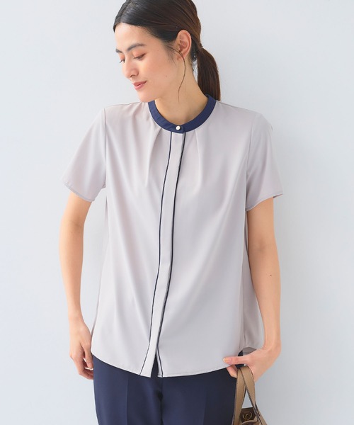お手入れ楽ちん 頼れるきれい見えブラウス ■正解シリーズとは? 「失敗したくない」そんな声から生まれた正解シリーズ。 カジュアルにもキレイめにも着られて、どんなシーンにも活躍してくれる! まさに「王道」ともいえる味方服です。 《嬉しい4つの機能》 1.シワになりにくい シワを気にせず、きちんと見え。お手入れ簡単なのが嬉しい。 2.速乾 速乾なのでサラリと快適。洗濯後乾きやすいのもポイント。 3. UVカット UV対策機能付きで紫外線から肌を守ります。 4. 接触冷感 ひんやりタッチの接触冷感で夏場も快適に。 【デザイン】 ・配色パイピングデザインがポイントの半袖ブラウス。 ・シルキータッチでなめらかな触り心地と透けにくいのも嬉しい1着。 ・バンドカラーなので首回りがスッキリ見え。 ・前ボタンの見えないヒヨク仕立てで高級感も忘れずに。 ・ゆとりのある袖幅で二の腕カバーも◎ 【コーディネート】 ・さらっとしたきれいめな素材でオフィススタイルでも活躍。 ・テーパードパンツからワイドパンツまでどんなシルエットのボトムスとも合わせやすく、着回し力も◎ 【サイズ展開】 Mサイズ Lサイズ LLサイズ モデル身長:168c/169cm 着用サイズ:Mサイズ 【洗濯・取り扱い】 洗濯:ネットを使用して洗濯可能 アイロン:アイロン不可 乾燥:タンブル乾燥不可 ------------------------------------- 透け感:ややあり 伸縮性:ややあり 厚み:普通 裏地:なし 洗濯: -------------------------------------- ※撮影時のライティング、ご覧になっているモニター・PC環境により実際の商品と色味が異なって見える場合がございます。ご了承の上お買い求め下さい。