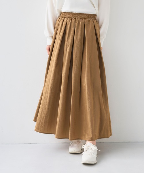 光沢素材でキレイ見え ふんわりフレアシルエットスカート ■アクティかるシリーズとは? 仕事からそのまま旅行に行けるほど、アクティブに動きやすい軽量シリーズ。 撥水、UV対策などその時期のアイテムとして最適な機能が充実。 《嬉しい3つの機能》 1.撥水 雨の日や夏のレジャーシーンでも安心の撥水加工。 また水溶性の汚れが付きにくいのも嬉しいポイント。 2.UVカット 夏のおでかけにも安心の1枚♪紫外線からお肌を守ります。 3. 花粉が落ちやすい 花粉が落ちやすいので、室内に持ち込まない対策に。 ※完全に花粉の付着を防ぐものではございません。 【デザイン】 ・ナイロン素材でカジュアルに使えるフレアシルエットスカート。 ・たっぷり生地を使用し、タックを入れボリューム感が魅力。 ・上品な光沢感で、ナイロン素材でもカジュアルになりすぎずコーディネートをきれいに魅せてくれる1着に仕上げました。 ・シンプルで合わせるアイテムを選ばず、撥水機能付きなのでお天気の心配もいらない毎日でも着たいアイテムです。 【コーディネート】 ・ブライトナイロン撥水バルーンブルゾン(品番:956501)とのセットアップコーデがおすすめ。 ・合わせるトップスやシューズで春~秋までロングシーズン活躍します。 【サイズ展開】 Mサイズ Lサイズ LLサイズ モデル身長:165cm/168cm 着用サイズ:Mサイズ 【洗濯・取り扱い】 洗濯:洗濯可 アイロン:アイロン可 乾燥:タンブル乾燥不可 ------------------------------------- 透け感:なし 伸縮性:なし 厚み:薄手 裏地:なし 洗濯:可 -------------------------------------- ※撮影時のライティング、ご覧になっているモニター・PC環境により実際の商品と色味が異なって見える場合がございます。ご了承の上お買い求め下さい。