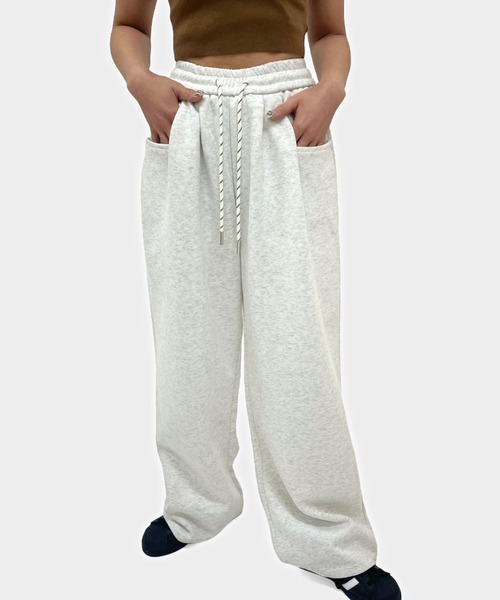 【超ワイドが今っぽい!?リラックススウェットパンツ】 ◆Design ・裾がワイドに広がっているので、足のシルエットが隠れてスタイルも詐欺れる一着。 ・ヒラヒラと綺麗になびき優雅な気持ちになり、ボリューム満点でスタイルのメリハリもつけやすい。 ・ウエストはゴムで紐もついてるからサイズ調節が自由にできる。 ◆Fabric ・履き心地抜群のスウェット生地で運動が出来ちゃうくらい柔らかいのもポイント◎ ・締め付けはせず優しいフィット感を実現し、肌に直接触れてもチクチクしにくい。 ・伸縮性のある素材を使用しているからそのまま眠りにつきたくなるような履き心地なところも魅力です。 ◆Styling ・ボリュームのあるワイドパンツなのでトップスはフィット感のあるものや体のラインが出るものを合わせると 全体のバランスが良くなりスタイルも盛れるのでオススメ。 ・ショート丈のトップスでメリハリをつけるのも◎ ※商品画像は着用イメージです。光や角度により、実物と色味が異なる場合がございます。 また表示のサイズ感も実物とは若干異なる場合もございますので、予めご了承ください。 ※着用、お取り扱いの際は、商品に付いている品質表示とアテンションタグを必ずご確認ください。 ※サイズは平置き寸法で表記しております。着用により素材の重みで丈感や袖が表記より長くなる場合がございます。 ≪お買い物をよりお楽しみいただくために♪≫ ♡商品のお気に入り登録 完売カラーの再入荷通知や、完売間近の通知、セールの通知を受けることができます。 ♡ブランドのお気に入り登録 新商品や再入荷など、いち早くブランドのお得な情報を受け取ることができます。