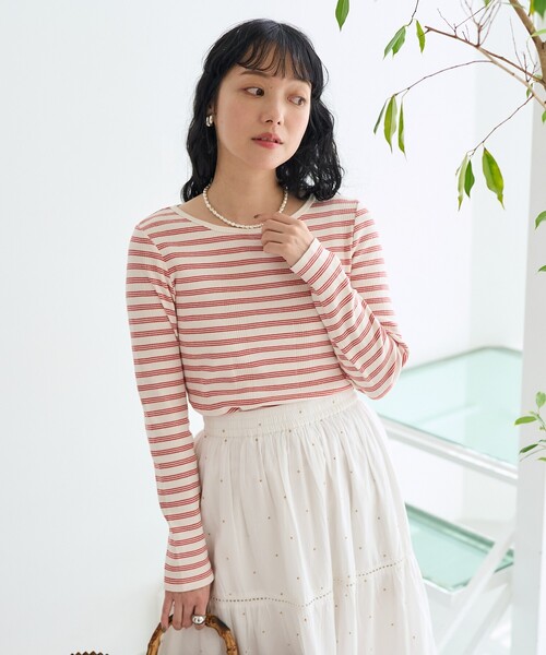 2025 Spring & Summer item女性らしく着こなせる汎用性抜群のバレエネックロンT●首が詰まっていないので抜け感が演出出来て、女性らしい印象を作れるバレエネックロンT●デコルテを綺麗に覗かせる広めのネックラインがポイントです●表情のあるランダムリブ生地で肌触りも◎●フィット感のあるコンパクトシルエット●程よい厚みでインナーにも一枚でも使いやすいアイテムですおすすめコーディネートデニムやタックパンツにタックインしてシンプルなスタイリングが定番。サロペットやキャミソールワンピースの、ジャケットやカーディガンのインナーとしても活躍します。汎用性の高く便利な一枚です。--------------------------------------------------------お気に入り登録のオススメ▼商品のお気に入り登録▼再入荷、残り1点、セールなどの通知を受け取ることができます。▼ブランドのお気に入り登録▼新商品や再入荷、ショップのおすすめトピックスなど、いち早くブランドの情報を受け取ることができます。-------------------------------------------------------- ※こちらの商品は、弊社管理上のカラーを表記しております為、タグのカラー表記と異なる記載となっております。【サイト表記:タグ表記】・オフホワイト:OFF・ブラック:OFF×BLK・レッド:OFF×RED・サックスブルー:OFF×BLU※掲載画像の商品の色味は、屋外や屋内の光の照射や角度により実物と色味が異なる場合がございます。また表示のサイズ感と実物は若干異なる場合もございますので、予めご了承ください。※着用、お取り扱いの際は、商品についている品質表示とアテンションタグを必ずご確認下さい。【FREAK'S STORE/フリークスストア】「アメリカの豊かさとワクワク・ドキドキを日本に伝えたい」という想いからスタート。1986年の創業以来、洋服、雑貨、インテリアなど自分たちが本気でカッコ良いと思うものをセレクト。積極的に楽しむ生活体験者=フリークとして、アメリカンライフスタイルの楽しみ方を提案するセレクトショップです。