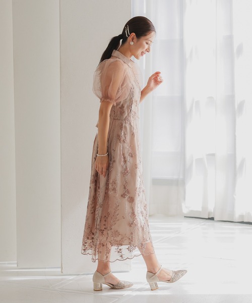 結婚式 お呼ばれ 二次会 謝恩会 成人式 同窓会 対応 20代 30代 レース 刺繍 チュール パフスリーブ ハイネック フレア ロング丈 きれいめ セレモニー パーティ オケージョン ドレス
