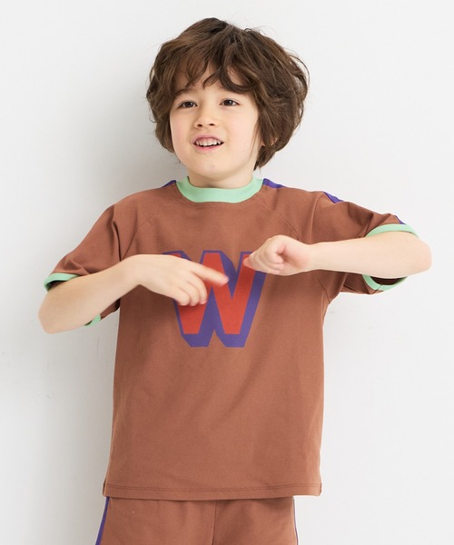マーキーズの夏の定番人気アイテム! [UVカット][吸水速乾][消臭加工]の機能性バツグンです! セットアップコーデもカワイイ♪ ■デザイン 昨年人気だったアイテムが今季も登場! スポーティーなアルファベットプリントTシャツです。 通気性がいい薄手の生地感でサラッと着やすい肌ざわりです。 普段着はもちろん、保育園や幼稚園などでも大活躍すること間違いなし! ショルダーラインのカラー配色がアクスセントに。 袖口のパイピングもポイント♪ ■スタイリング 同デザインのパンツとセットアップがカワイイ! ユニセックスで着用できるアイテムなので、きょうだいやお友達とリンクコーデも◎ ■生地感 ポリエステル100%のサラっとした生地感。 通気性がよく、軽い着心地。 UVカット・吸水速乾・消臭加工が施されているので、暑い夏にも最適な1着です。 ++++++++++++++++++++++++ 透け感:なし 伸縮性:少しあり 生地の厚み:普通 裏地:なし ++++++++++++++++++++++++ ※80~95cm のみ肩ボタン付き ※ネームタグ付き ※UVカット・消臭加工・吸汗速乾 ■セットアップアイテム ・サイドラインショートパンツ:0000151032 ※モデルが着用している画像は、照明や日光などの撮影時の環境により実物と異なる色味になる場合がございます。 商品単体の平置き画像を実物に近いお色味になるよう努めておりますので、お色味のご確認は平置き画像をご参照くださいませ。 ※お使いのモニター環境によっても実物のお色味と異なって見える場合がございます。予めご理解の程よろしくお願いいたします。 ハートマークをポチッ! 気になる商品はお気に入り登録をお忘れなく! 商品のお気に入り登録をすると... [再入荷][残り1点][セール情報]を受け取れます。 MARKEY'Sをお気に入り登録すると... [新商品][再入荷]の情報をいち早く受け取れます。