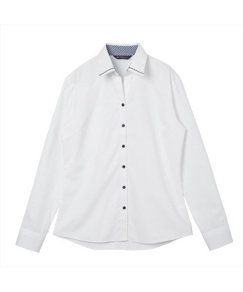 視線が集る顔回りに近い衿羽根に お洒落なデザインをプラス。 別布と同色で華美過ぎない洒落感で ビジネスシーンにもおすすめです。 Vゾーンにメリハリができ 顔回りをすっきりと魅せれくれます。 --透け防止シャツ レディース-- 透け感軽減+UVカット生地でどんな 季節もお洒落な着こなしが楽しめます。 形態安定加工と綿×ポリエステル 素材で、クリーニング要らずの 自宅で取扱い楽ちんのワイシャツ。 ■仕様 カフリンクス使用可能 アジャストボタン 前身頃ダーツなし・後身頃ダーツ入り 台衿内側・カフス裏側:別布仕様 衿羽根:マイター仕様 ※別布を含む濃色生地は色落ち・移染が 発生する場合があるため、お洗濯時は 衣類の組合わせにご注意ください。 【BRICK HOUSE by Tokyo Shirts / ブリックハウス バイ トウキョウシャツ】業界トップ水準を誇るノーアイロンの形態安定加工は自宅で洗濯可能でお手入れ簡単!高度な縫製技術を用いた高付加価値シャツでありながら選ぶことを気軽に楽しめます。ベーシックから多様なデザインまで幅広いバリエーションで豊富なサイズ展開で、ディテールの隅々にまで織り込んで一枚一枚丁寧に仕立てられたシャツです。