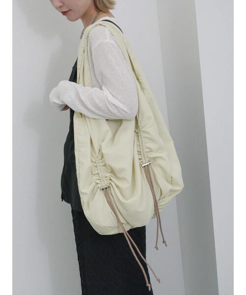 くしゅっとしたドローストリングが表情感を演出するトートバッグ。 内側にはポケットが付いているため、小物類を整理することができます。 荷物をたっぷりと収納できるサイズ感もポイント。 休日のお出かけや旅行シーンにも大活躍してくれるアイテムです。 ※商品画像は、撮影環境やお客様のご利用のPC・スマートフォンのモニター環境などにより実物と色味に差異がある場合がございます。