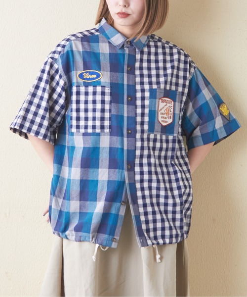 アメカジファン必見!大胆に遊ぶ2種類の柄。切替ビッグシャツ昨年人気だったギンガムチェックシャツがアップデートされ新登場!大小の2種類のギンガムチェックを組み合わせた切替デザインがポイント。ワッペンをプラスしてアメカジ好きにはたまらないこだわり詰まった一着です。■point・ワークシャツの雰囲気がある両胸ポケット付き・フロントと左袖のミリタリーテイストなワッペン・裾のドロストでシルエットチェンジが可能・背面にはあると便利なハンガーループ・メンズライクなオーバーサイズ■fabric軽やかで通気性もよく、ストレスフリーな着用感。程よいハリ感のある素材で型崩れを起こしにくいのも嬉しいポイント。乾きやすく丈夫なので、着回ししやすいアイテムです。■透け感/なし■伸縮性/なし■張り感/ややあり■裏地/なし《お気に入り登録》でお得な情報を受け取れます!・「商品のお気に入り登録」で再入荷通知や、セール通知を受け取ることができます。・「ブランドのお気に入り登録」で新商品や再入荷など、お得な情報を受け取ることができます。※モニター・環境等により実際の商品と多少色味が異なって表示される場合がございます。予めご了承をお願い致します。【アイテムカテゴリ】トップス シャツ コットンシャツ ビッグシャツ ワイドシャツ オーバーサイズシャツ シャツスタイル ワークシャツ 半袖シャツ レギュラーシャツ 開襟シャツ オープンカラーシャツ ギンガムチェックシャツ 切替シャツ バルーンシャツ【デザイン】総柄 チェック柄 ギンガムチェック リメイク パッチワーク 切り替え 切替 ツギハギ ワッペン ワンポイント 【シルエット】ドロップショルダー ビッグシルエット ビッグサイズ オーバーサイズ ルーズ 大きいサイズ ワイドシルエット ゆったり 大きめ 着心地 楽ちん 動きやすい ジャストサイズ Mサイズ ワンサイズ フリーサイズ マルチサイズ ワイド 幅広 体系カバー 二の腕カバー ミディアム丈 ミドル丈 半袖 半そで ショートスリーブ ハーフスリーブ 5分袖 襟付き 衿付き オープンカラー 開襟 ドローコード ドローストリング ドロスト バルーンシルエット コクーンシルエット ボタン留め ボタン開き 前開き ボタンフライ フロントボタン 前ボタン【生地・素材】綿混 コットン混 シャツ地 布帛 綿麻 コットンリネン 製品洗い【カラー展開】ブラック カーキ ブルー 黒 緑色 深緑 枯草色 青 碧 蒼 無地 シンプル ワントーン ワンカラー 単色 配色 バイカラー ツートーン カラフル クレイジーパターン マルチ ミックスカラー 春カラー 春色 夏カラー 夏色 アースカラー ミリタリーカラー アーミーカラー ニュアンスカラー モノトーン 定番カラー ベーシックカラー ビビットカラー プレイフルカラー【ファッションテイスト】OL ウィメンズ コーディネート 人気 定番 可愛い かわいい かっこいい お洒落 おしゃれ 大人 個性的 生地 柔らかい トレンド 大人カジュアル アメカジ アメリカンカジュアル アメカジファッション 出かけ着 普段着 新作 新着 10代 20代 30代 40代 50代 お誕生日 ギフト プレゼント おかえし おそろい 記念日 ママ 彼女 デイリー 着痩せ 着回し ペアルック デート お出かけ タウンユース ブランド アメカジブランド アパレル 服 ミリタリーテイスト ミリタリースタイル ミリタリーファッション アーミー 軍物 軍モノ サファリファッション サファリコーデ ワークテイスト ワークスタイル ワークウェア スポーティファッション スポーツミックス 大人ナチュラル ラフ ストリートスタイル ストリートファッション ストリート系 スケータースタイル スケーターファッション フェス ライブ メンズライク ボーイッシュ 大人見え 旅行 トラベル 古着MIX 古着ミックス 古着テイスト 古着女子 ユーズドミックス 古着風 古着っぽいブランド レトロ ノスタルジー ノスタルジック【シーズン】春 夏 秋 3シーズン ロングシーズン スリーシーズン 春服 夏服 春コーデ 夏コーデ 秋服 秋コーデ