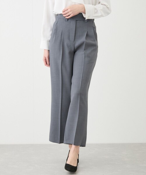 【デザイン・シルエット】 リネンライクな風合いが春の装いにぴったりなタックパンツ。 ワイドシルエットでスタイルアップが叶います。 後スリットで抜け感をプラス。 ウエストのボタンもアクセントに。 春夏に重宝する一枚です。 【素材感】 ドライタッチでリネンライクな素材 【カラー】 07グレー 27ベージュ 【スタイリングポイント】 同布のリネンライクジャケット(FLV25020)とのセット着用がおすすめです◎ ブラウスやTシャツをさらっと合わせるとこなれ感が出て、大人可愛いコーデに仕上がります。 裏地:なし 光沢感:なし 透け感:なし ポケット:あり 伸縮性:若干あり 生地の厚さ:普通 ボタン:あり その他仕様:ウエストゴム 季節:春夏秋 ※撮影時の光、お使いのモニター環境によって色の見え方が違う場合がございます。予めご了承ください。 モデル身長:172cm 着用サイズ:M