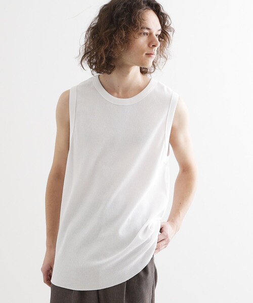 【素材】 コットンポリエステルワッフル素材を使用しています。 軽やかでタッチの柔らかさが特徴の生地です。 【デザイン】 Tシャツやシャツ等のレイヤードに最適な、やや着丈が長めのワッフルノースリーブタンク。 長めの着丈、裾をシャツカット(曲線)のロック始末にすることでレイヤードを楽しんでいただける仕様に。 ビンテージライクな加工を施したアイテムやレースシャツとの合わせがおすすめです。 ネック、アームホールのリブをやや太くすることでデザイン性のある一枚に仕上がりました。 ※白は一枚で着るとやや透け感があります。 【推奨サイズ】 01サイズ(S):160~170cm 02サイズ(M):165~175cm 03サイズ(L):170~180cm ※標準体型を基にした目安になります。 - BRAND CONCEPT - 時代を超えて支持されるトラディショナルなアイテムをベースに、アソビ心とストリートの自由な発想を取り入れ、日本独自のミックススタイルを提案します。 【気になる商品はお気に入り登録をおススメ】 ▼商品のお気に入り登録 完売しているカラーの再入荷通知や、ラスト1点、セールの通知をお知らせいたします。 ▼ブランドのお気に入り登録 新商品や再入荷など、いち早くブランドの情報を受け取ることができます。 ※照明の関係により、実際よりも色味が違って見える場合があります。また、パソコン・スマートフォンなどの環境により、若干製品と画像のカラーが異なる場合もございます。 モデル情報:身長175cm B83 W66 H87 着用サイズ:03(L) 店舗へのお問い合わせ商品番号:170-32319 ●製品寸法: 01(S):着丈前71cm 着丈後74cm B104cm 肩幅36cm 02(M):着丈前74cm 着丈後77cm B108cm 肩幅38cm 03(L):着丈前77cm 着丈後80cm B112cm 肩幅40cm 備考:
