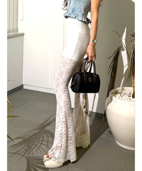 【レース】【レギンス】【レイヤードITEM】 【長さサイズ違いあり:S/M】【ウエストゴム】 ■商品ポイント ・トレンドのレースアイテム ・ウエストゴム○ ・裏地あり ・SサイズとMサイズの長さの差4cm トレンドのレース素材を使用したフレアパンツです。 太もも真ん中まで裏地が付いているので1枚で安心して履いて頂けます。 伸縮性のあるレースを使用しており、 ウエストもゴム仕様なので着用して頂きやすく、 フィット感がありでスタイルアップ効果のあるパンツです。 ※Sサイズより、Mサイズ4cm長いです。 ■オススメのコーディネート Tシャツやフーディーなどオーバーサイズのトップスに プラスワンがオススメ。 ワンピースとのレイヤードもトレンド感が出せて◎ -------------- 透け感:裏地部分/なし 裏地:あり 生地の厚み:普通 伸縮性:なし ウエスト:ゴム --------------