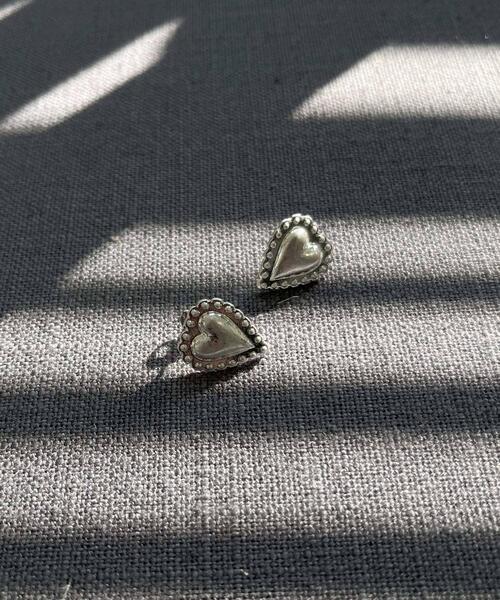 このアイテムはWEBと一部店舗での取り扱いです。【大人っぽく取り入れたいヴィンテージ風ハート】●ハートモチーフをさらに縁取ったデザイン●マットな加工がヴィンテージライクでこなれた雰囲気●コーディネートのスパイスとして取り入れたいヴィンテージライクな加工を施した、ハートモチーフのピアス。あえて使い込んだような風合いを出すことにより、甘さを抑えた大人っぽいハートアイテムに仕上がっています。可愛らしいイメージの強いハートモチーフですが、カジュアルなスタイリングにもすんなり馴染むアイテムです。【2025 Spring/Summer】【25SS】※金属アレルギー症状が出にくいチタン、ニッケルフリー素材、ステンレス等を使用しています。すべての方にアレルギーが起こらないということではありませんので、万が一アレルギーの症状が出ましたら直ちに使用を中止してください。※メッキ製品(特に銀メッキ)は変色しやすいため、こまめなお手入れで防止してください。長期放置やスプレー香料などの同時使用は、特にお避けください。※メッキ製品は、アレルギー体質の方や体調が低下している方など、かぶれることがあります。肌に異常を感じた時はご使用をお止めいただき専門医にご相談ください。※アクセサリーは壊れやすいものです。取り扱いに注意していただき大切にご使用いただけるようお願い申し上げます。重量(片耳) : 約1.5g※商品画像は、光の当たり具合やパソコンなどの閲覧環境により、実際の色味と異なって見える場合がございます。予めご了承ください。※商品の色味の目安は、商品単体の画像をご参照ください。▼お気に入り登録のおすすめ▼お気に入り登録商品は、マイページにて現在の価格情報や在庫状況の確認が可能です。お買い物リストの管理に是非ご利用ください。