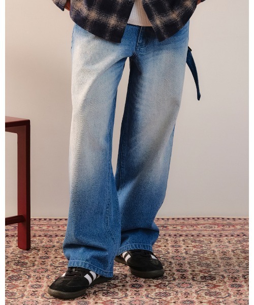 ■デザインポイント・シルエット・トレンドに左右されず、オールシーズン着回せるデニムパンツ。・太過ぎない絶妙なシルエットラインがスタイリングをきれいに見せてくれるアイテム。・全体に洗いをかけた古着のようなウォッシュカラーデザインがこなれ感を演出。・右サイドの波をモチーフにしたオリジナル刺繍がさり気ないワンポイントに。・バックポケットは定番のオリジナルステッチ、腰にはブランドロゴが刻印された革パッチも有り。■素材・生地感 ・綿100%を使用し、丈夫でしっかりとした仕上がり。・型崩れのしにくいしっかりとしたハリのある生地で長く愛用していただけます。