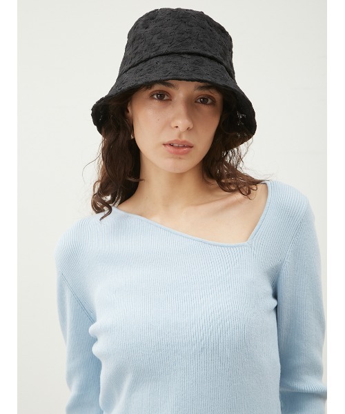 【レース素材の透け感が涼しげ。フラワーモチーフのバケット型ハット】 【Design/Styling】 フラワーレースのモチーフが涼しげな、バケット型のハットです。 程よい透け感が女性らしいデザイン。 レース生地で柔らかく、頭馴染みが良いのもポイント。 柄見えしながらも、全体的にはワントーンにまとまっているので、どのスタイリングとも合わせやすいのが特長です。 内側にはマジックテープがついていて、サイズ調整も可能なので、バランスよくかぶれます。 【Color】 カラーはモノトーンの2色をご用意。エレガントな<ホワイト>と、モード感がありつつ合わせやすい<ブラック>で展開しています。 ※照明の関係により、実際よりも色味が違って見える場合があります。 またパソコン・スマートフォンなどの環境により、若干製品と画像のカラーが異なる場合もございます。予めご了承ください。 商品の色味は、商品単品画像をご参照下さい。 ※商品画像はサンプルのため、色味やサイズ等の仕様に変更がある場合がございますので、予めご了承ください。
